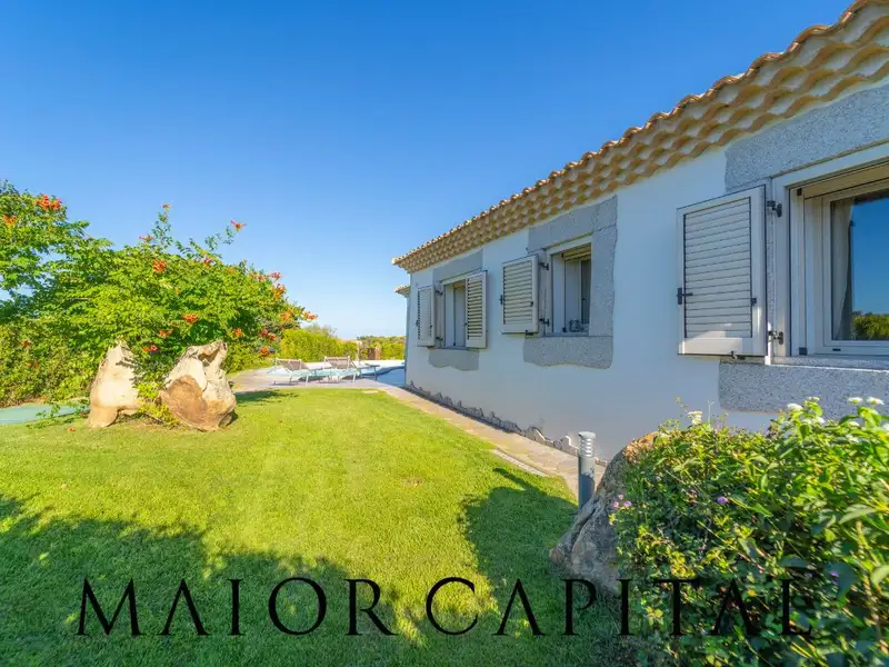 Outside, the house has a large covered patio overlooking the swimming pool, the sea and the beautifully landscaped garden, enriched with lawns and ornamental plants. The spacious sunbathing area, ideal for enjoying the summer sun, further enhances the outdoor spaces. The private swimming pool, already built and perfectly integrated into the surroundings, is a significant plus both for personal use and as a property investment: it increases the attractiveness of the property on the tourist rental market and enhances its value in the event of a future resale.