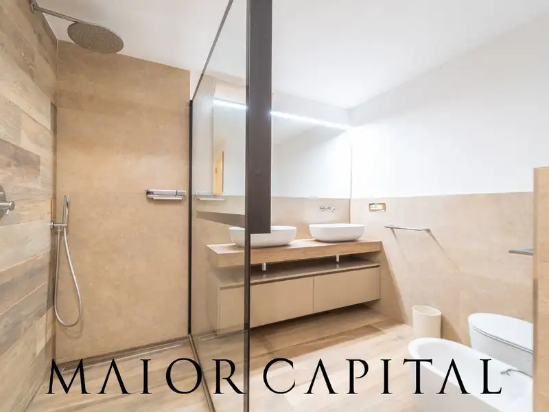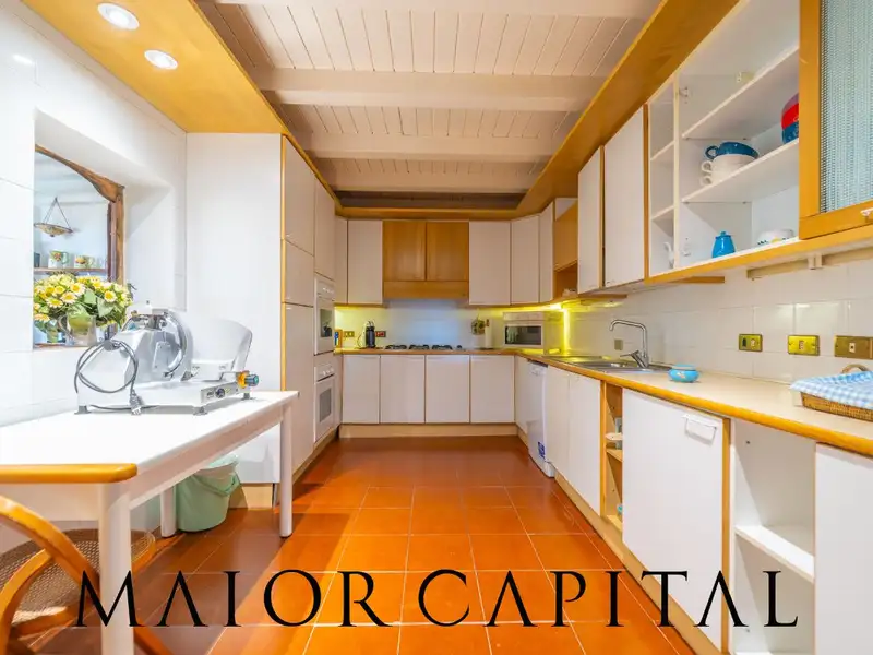 The basement is dedicated to the sleeping area and offers generous and well-distributed spaces. Here are seven bedrooms, five bathrooms, two rooms used as walk-in closets, a service kitchen, a laundry room, and a cellar. The large and well-divided spaces make this villa perfect for hosting a large family or welcoming guests in complete privacy and comfort.