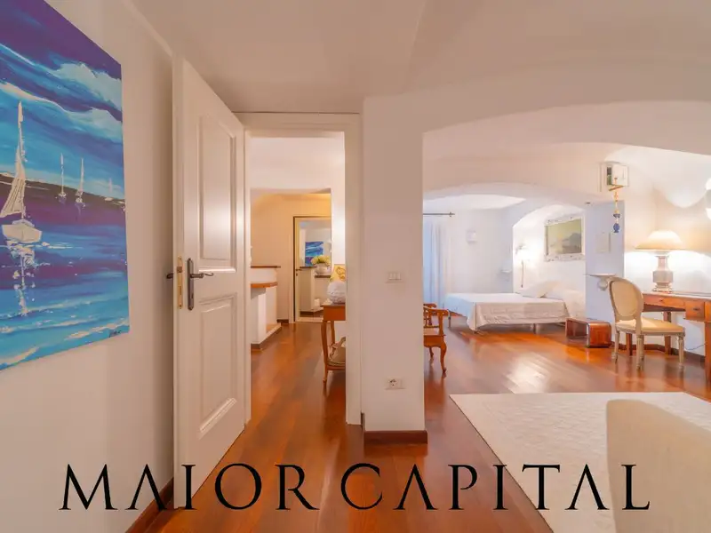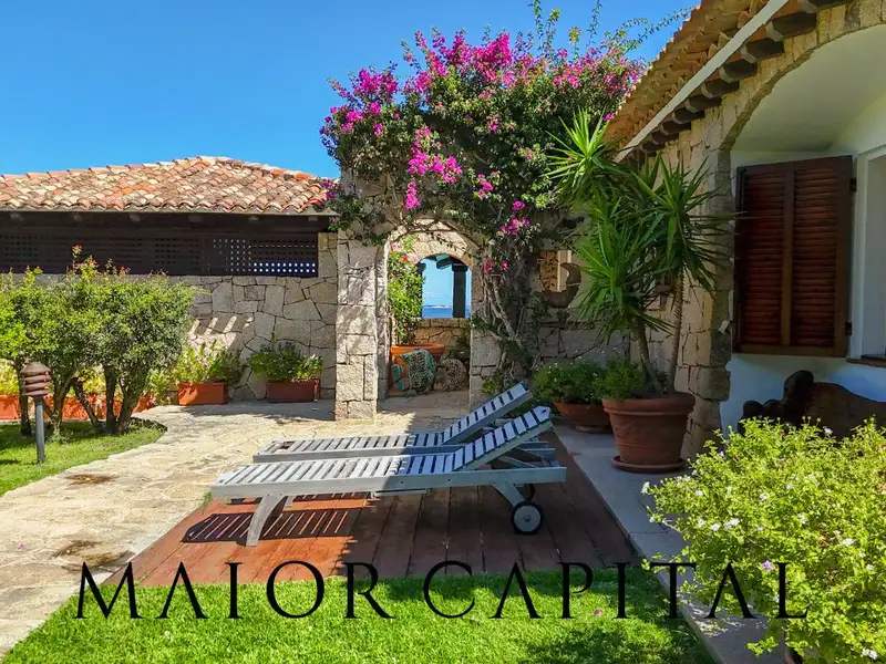 The villa is surrounded by a private park of approximately 4,000 sqm, enriched by lush Mediterranean maquis and a well-tended garden that guarantees total privacy. Access to the property, which opens onto a green lawn, is made even more spectacular by a driveway leading to the entrance patio, embellished with vibrant bougainvillea in bloom. From every corner of the house, you can admire the magnificence of the sea, the view that changes every hour of the day, and the feeling of peace that only such an exclusive location can offer.