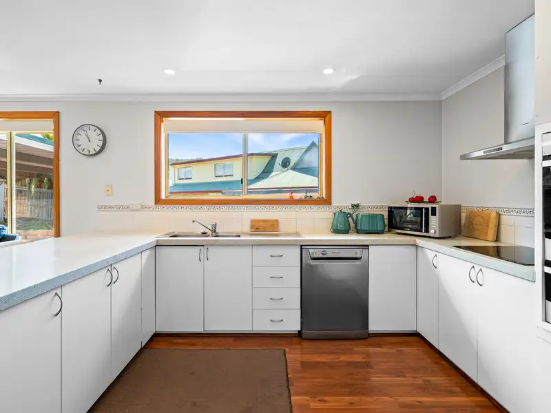 The large U-shaped kitchen is both practical and well-planned, providing excellent bench space and storage to suit busy households.