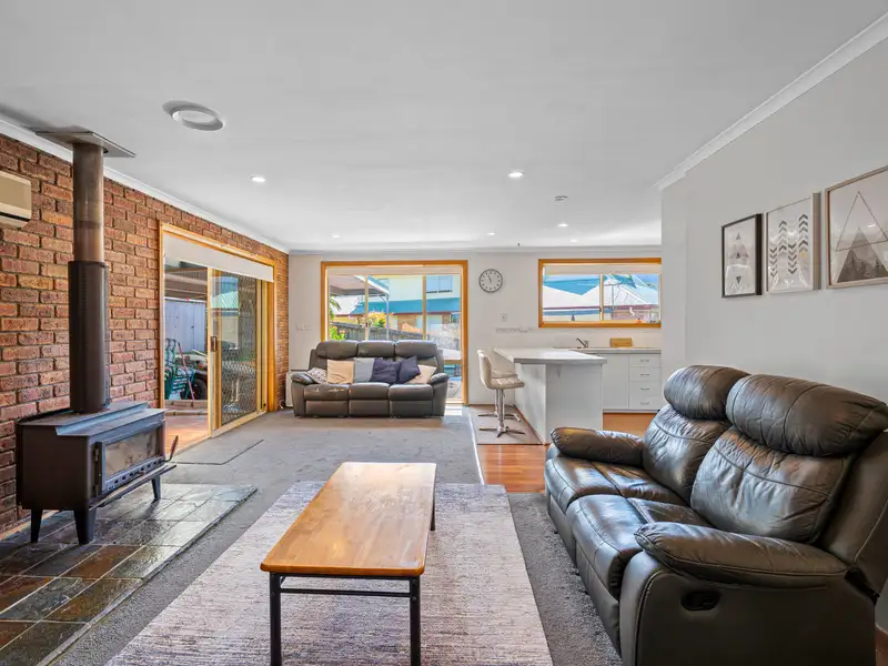 Inside, two separate living areas offer room for everyone – a welcoming formal lounge at the front and a relaxed family room at the heart of the home. Climate control is well-covered with a cosy wood heater, heat pump, and a ceiling heat-transfer system to keep temperatures comfortable throughout.