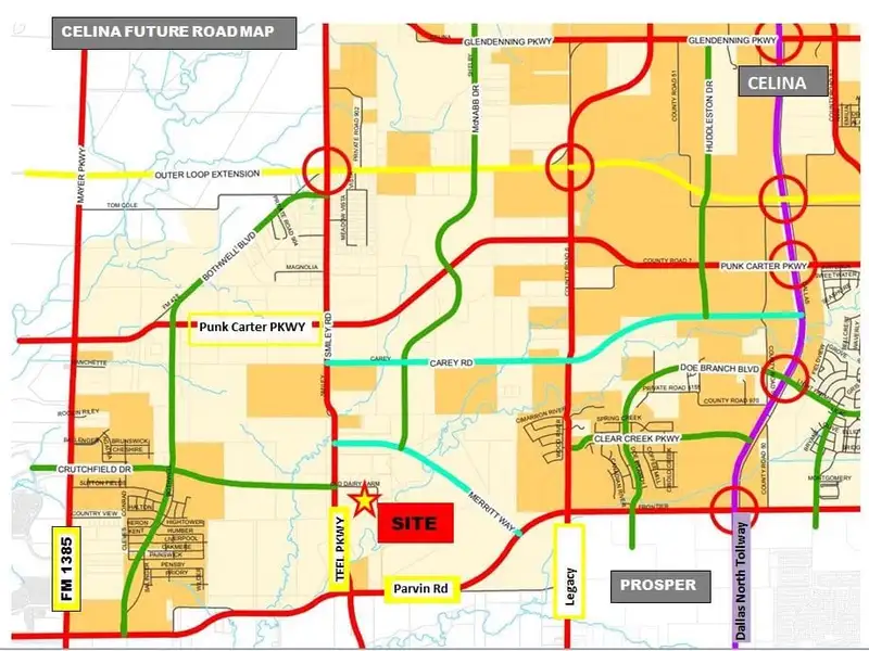 1.5 Acre parcel with potential commercial use! This property is right off Smiley Road that is under construction to accommodate the expansion of Green Meadows. Smiley Road will be Future Teel Parkway, a 6-lane road! What a rare opportunity to buy a small parcel in the high growth area of Celina! Old Dairy Farm Road will intersect at Teel Parkway with Crutchfield Road which is a 4-lane road (currently under construction) that connects to FM 1385. With so many established subdivisions in the area, it is now time for the business opportunities to start. Get ahead of the rush and secure this 1.5 acre lot for yourself!