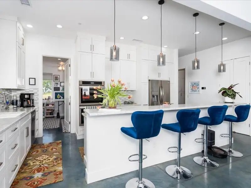 - Open kitchen with high-end granite and appliances
