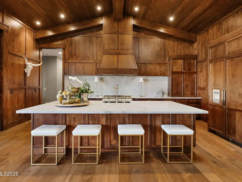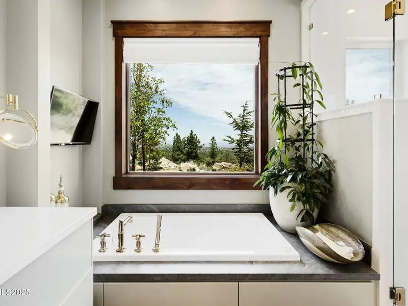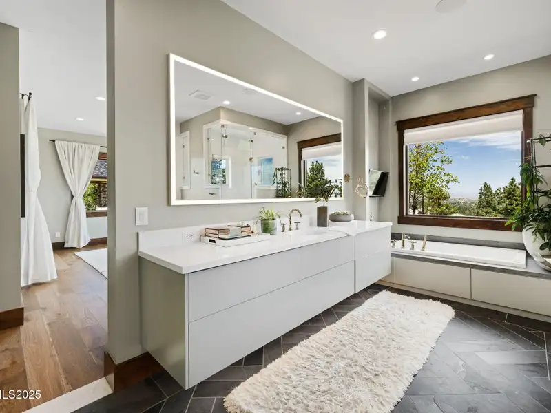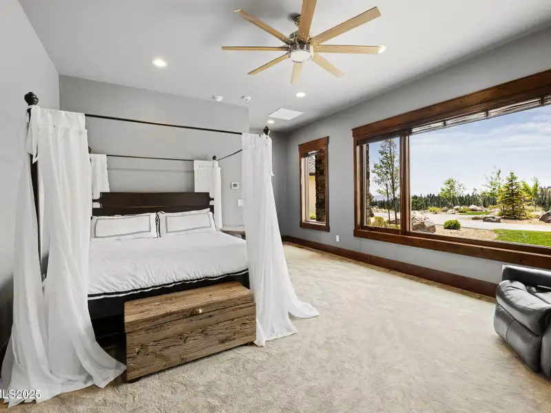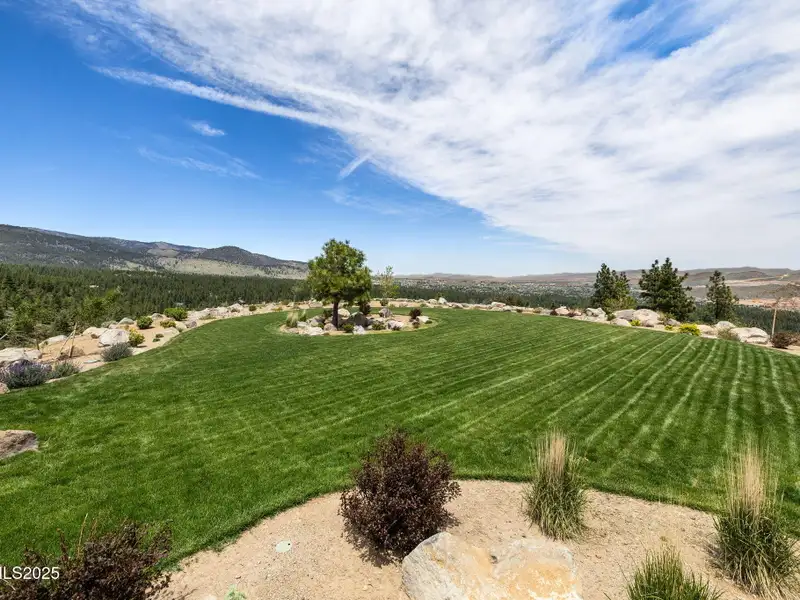 This is what it looks like at the top. Own the CROWN of Reno at 29 Bennington Court—a powerful property, built for bold living on one of the region's largest mountain top lots featuring 360-degree views of Mt. Rose, the city, and the forest. This custom, 4,831 sq ft single-level estate combines privacy, exclusivity, and luxury with three spacious suites, heated quartzite counters on the Kitchen Island, High end Thermador appliances, and Waterstone fixtures. Outside, the terrace features a massive yard, spa, gas firepit, and wood-burning hearth. Rising from St. James's Village, 29 Bennington Court commands the most powerful vantage in Reno. Spanning 6.33 acres across two contiguous parcels, this estate offers uninterrupted 360-degree views of Mt. Rose, downtown Reno, and the Sierra forest canopy. This single-level estate defines the top, geographically, architecturally, and experientially. This is not simply a home with views. It is the highest-positioned property in one of the region's most exclusive gated community—a singular alignment of land, layout, and presence. No other estate combines this scale, privacy, and presence. It does not compete. It leads. The structure is grounded in proportion and permanence. Wide hallways, soaring soffit ceilings, and generous transitions create a deliberate rhythm throughout the home. Material selections emphasize integrity over ornamentation: hardwood in primary living areas, plush carpet in private quarters, and marble thresholds where spaces shift. Skylights are positioned to trace the sun's arc, filling the interiors with natural light throughout the day. Each of the three en-suite bedrooms serves as a fully self-contained retreat—private, quiet, and complete. The primary suite features a steam shower, a deep soaking tub, radiant in-floor heating, and a meticulously outfitted dressing room with mirrored cabinetry, tailored lighting, and integrated storage. A discreet pass-through leads to the oversized laundry room, outfitted with dual washers and dryers, concealed hampers, and extensive cabinetry—designed for lasting function. Designed to balance performance and intention, the kitchen centers the home as a working space and a gathering area. A complete Thermador suite includes a six-burner range with griddle, dual convection ovens, commercial-grade ventilation, and integrated refrigeration. Heated quartzite countertops provide tactile comfort and thermal consistency. Cabinetry is full-depth and soft-close, with Waterstone fixtures chosen for their weight, reliability, and enduring finish. The walk-in pantry includes open shelving, a pebble ice maker, and grocery access to a three-car garage. Exterior living areas are designed for use and longevity. The terrace unfolds to a large patio with outdoor electric heating and a wood burning hearth, a recessed Bullfrog spa, a gas fire pit, and a massive yard. Hardscaping materials, including poured concrete and boulders sourced directly from the site, frame the home within its landscape rather than separate it. The office is not a token room; it is a space for strategy, output, and reflection. Equipped with built-in storage, a seamless flow into the great room, and forest-facing windows, it is designed to support sustained thought and forward movement. Whether the work is creative, operational, or directive, this is a room that holds its purpose. 33 Bennington Court, an adjacent undeveloped parcel, is included in the sale. Build a second structure, hold the land in reserve, or preserve the buffer indefinitely. This second lot represents opportunity and leverage in a gated setting where acquiring additional acreage is nearly impossible. Opportunities like this are never replicated. They're seized. No other property in Reno offers this elevation, this acreage, or this architectural clarity. 29 Bennington Court holds its position without effort—dominant in placement, precise in design, and unmatched in scope. It does not compete. It stands alone.