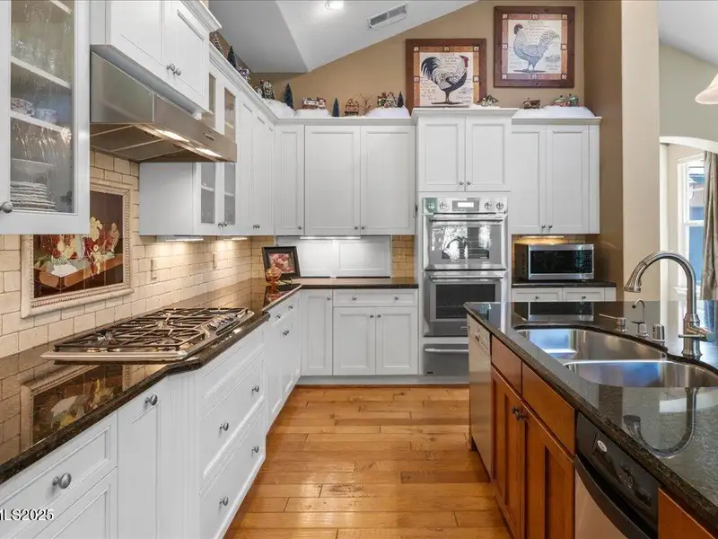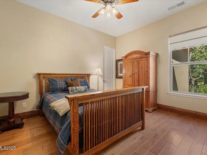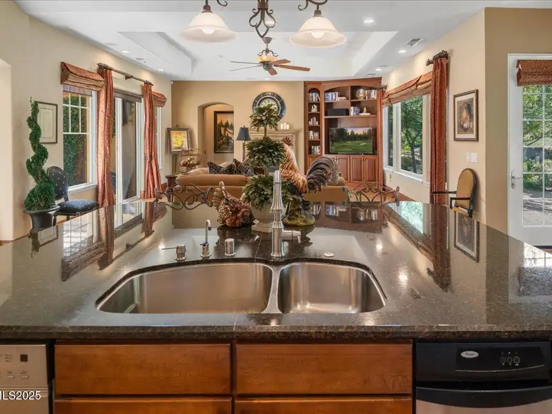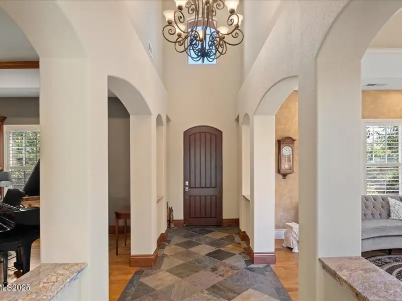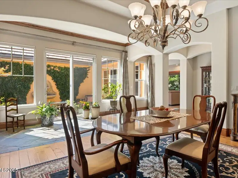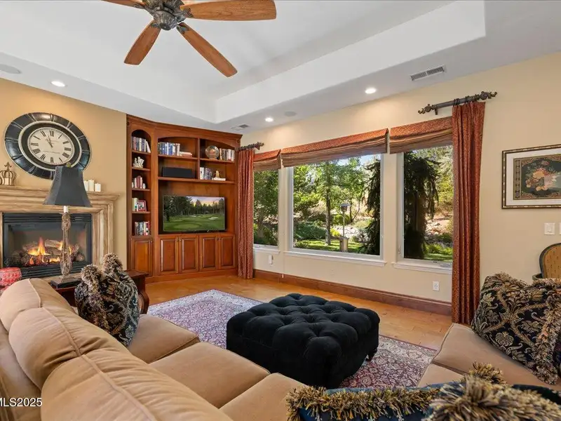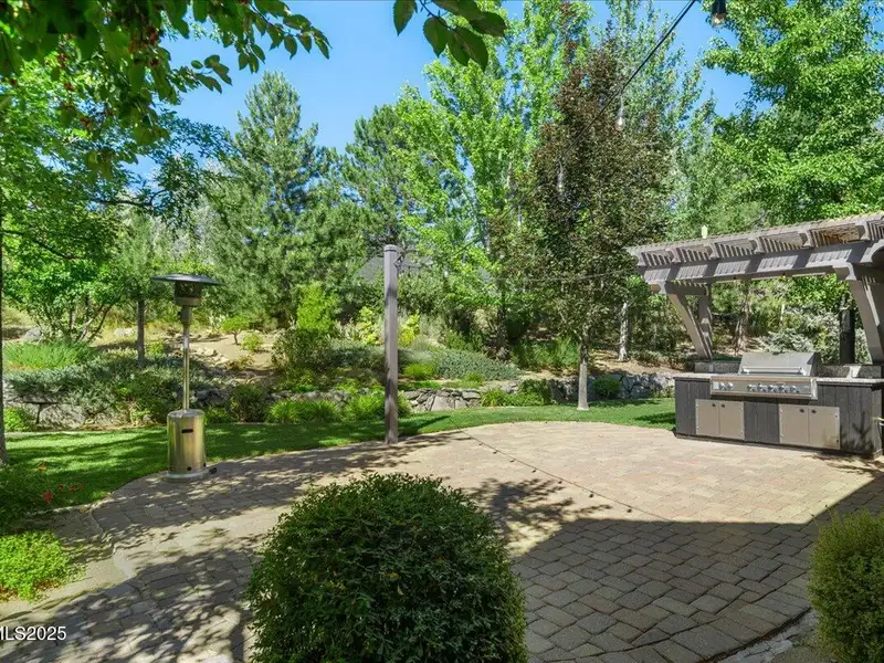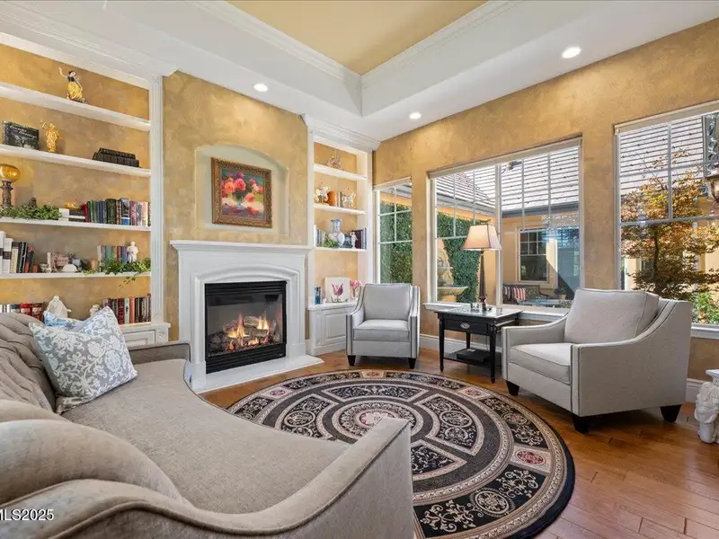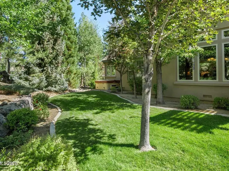 Mountain Views in Montreux! This luxurious single-level presents outstanding curb appeal, private lush landscaping, and extensive upgrades. The interior courtyard is an open-air oasis, providing luminous natural sunlight. Recent improvements include Thermador double oven, new interior paint, Primary Bath bidet, new LED lights, new attic ladder access, and approx. 50 new foliage plantings. Ease right into the Country Club lifestyle - Montreux Sports Membership included. Gourmet Kitchen features Granite countertops, Miele dishwasher, Thermador cooktop, warming drawer, and pull-out cabinet shelves. Kitchen and Laundry were expanded to create extra space and storage. Second Living Room/Bar is impressively equipped with temperature- controlled wine cabinet, ice maker, and refrigerator drawer. Slate tile, hardwood floors, Alder baseboards, and remarkable built-ins throughout. Other recent improvements include new electrical in Kitchen, new interior garage steps, and recently repaired furnace. The home has two almost new water heaters, newer acrylic stucco, roof system, reinforced shear walls, insulated garage doors, and re-sealed and re-installed windows. Surround Sound in Family Room. Peaceful backyard is outfitted with a built-in BBQ, expansive paver patio, hot tub, full mature trees, and 11 rose bushes. Interior Courtyard includes cables that support drop canvas covering. Welcome to Montreux, Northern Nevada's premier private golf course community. This 24/7 security gated luxury community surrounds an 18-hole, Jack Nicklaus Signature Championship Course (Par 72), with world-class Clubhouse amenities. This home on 16956 Rue du Parc is conveniently located near Montreux's main entrance, enjoys easy access to the community's paver walking trail, and is just a short stroll to all the Clubhouse action. In only 20 minutes, you can be skiing at Mt. Rose Ski Resort or jetting off from the Reno-Tahoe International Airport. Beautiful Lake Tahoe is a just a 30-minute leisurely drive away.