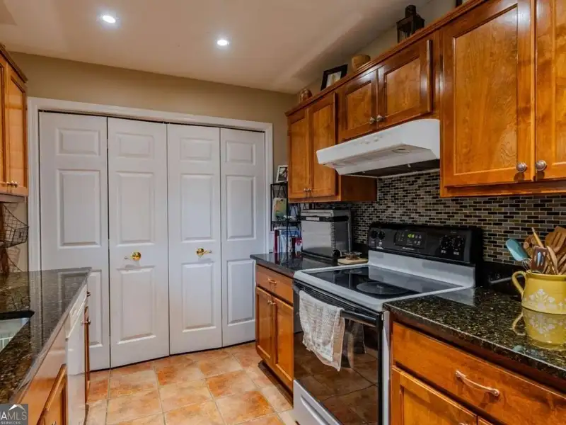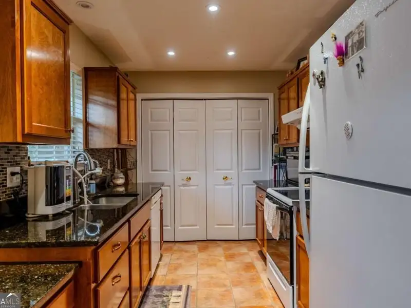 - Galley kitchen with granite countertops