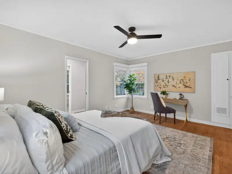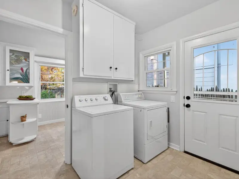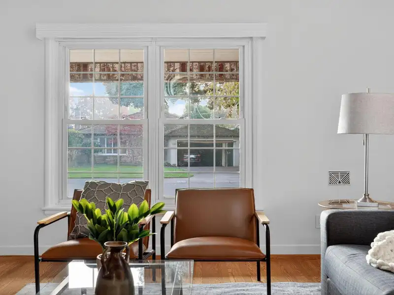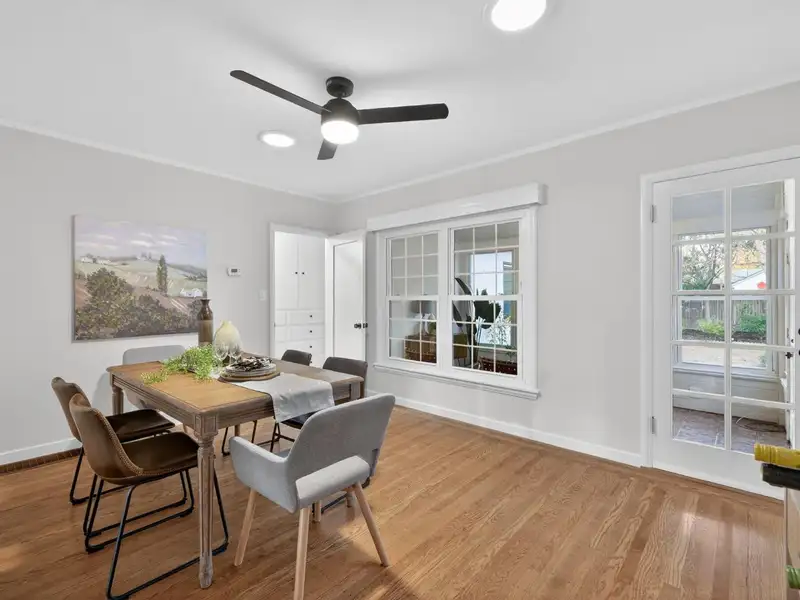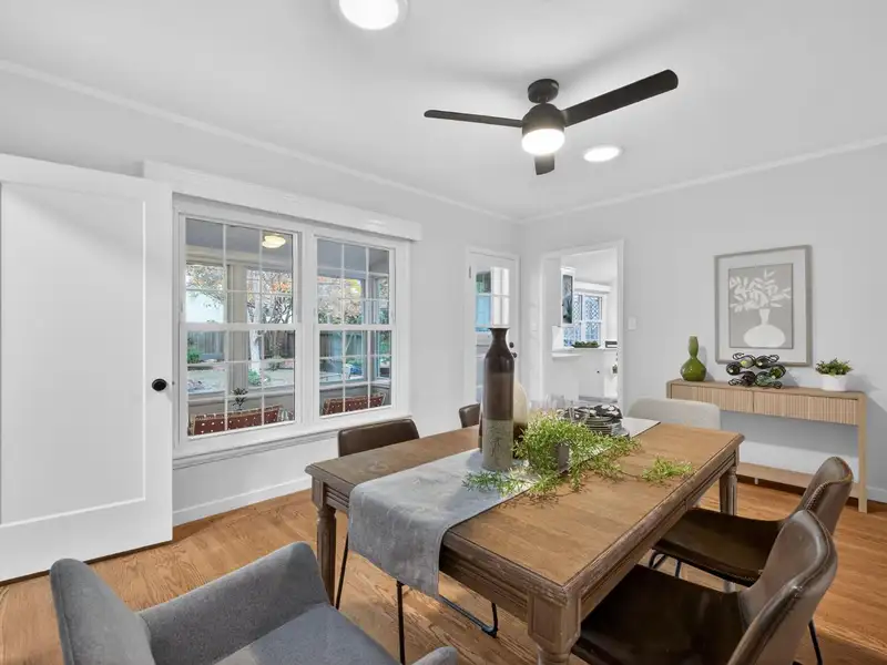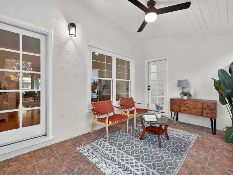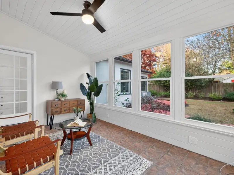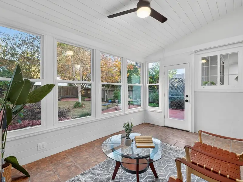 - Large sunroom with backyard views