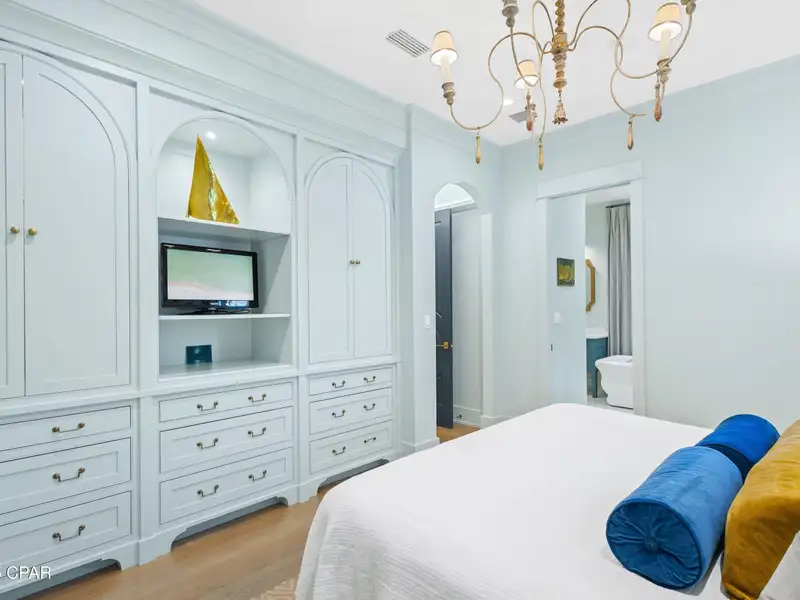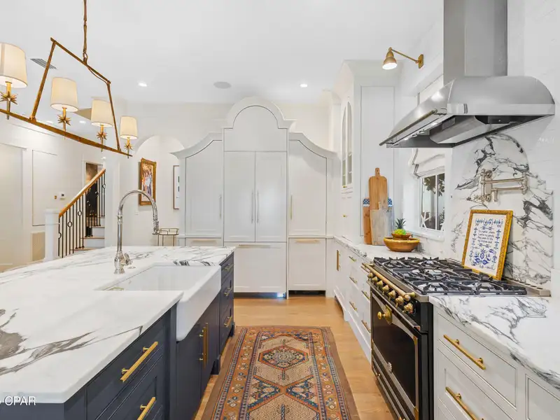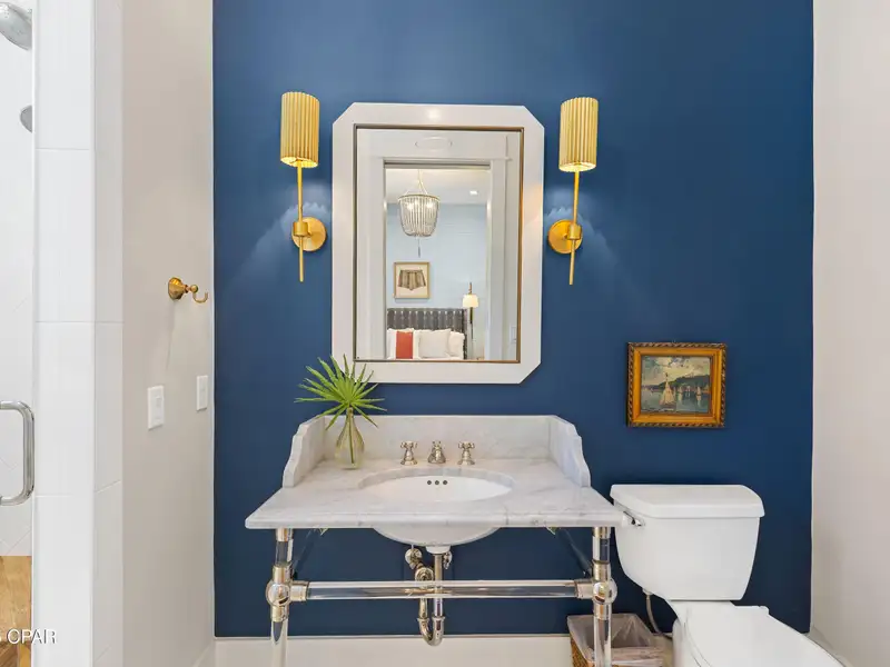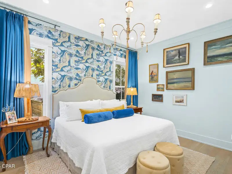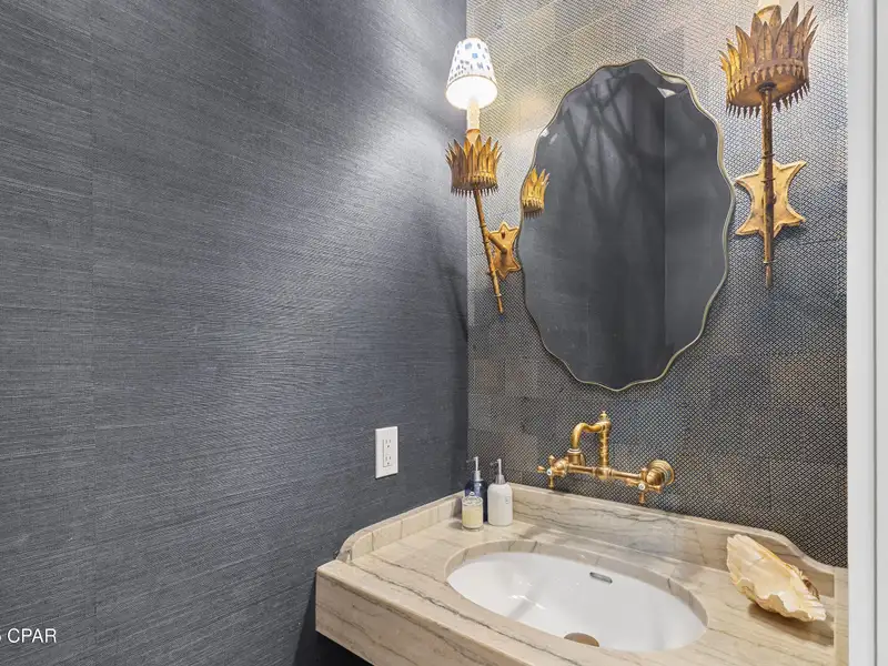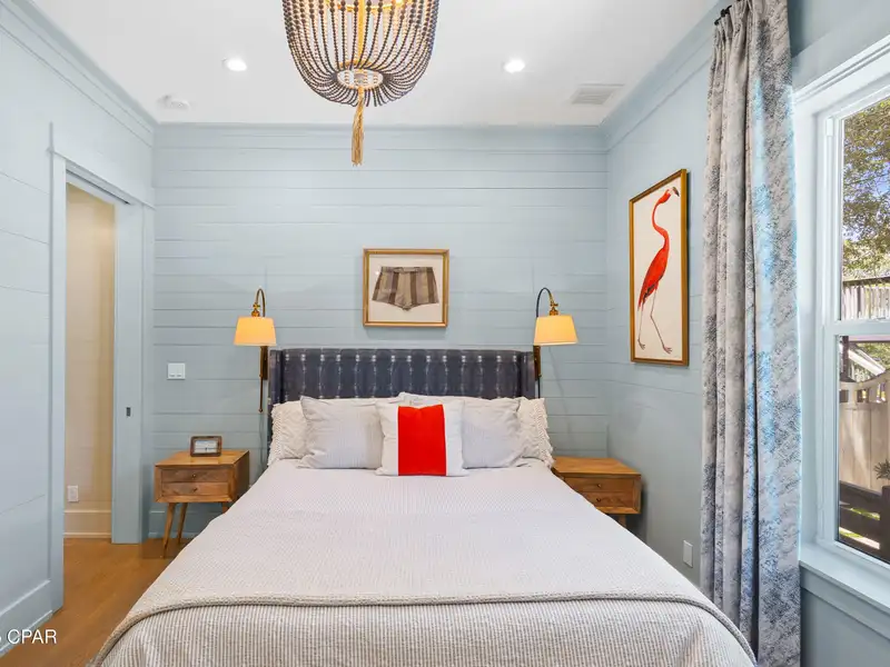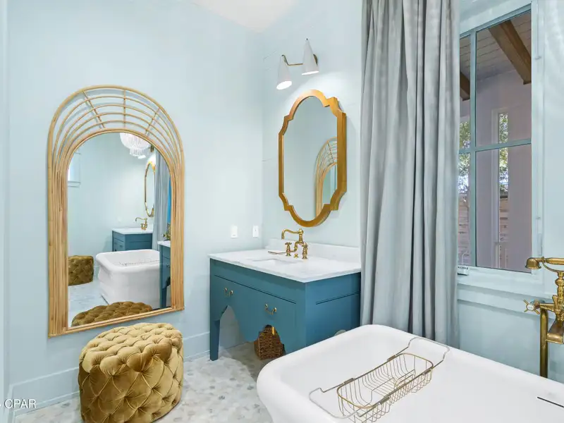 Welcome to 50 Camellia Street - a home where Southern charm meets coastal living in the heart of Old Seagrove Beach, just a bike ride from the energy of Seaside and WaterColor and just steps to the serenity of the Gulf. This property is a custom-crafted Southern Living plan, built by renowned 30A builder Mark Bakane. This refined coastal retreat seamlessly blends notes of timeless lowcountry architectural features with relaxed beachside elegance. From the moment you arrive, the home's craftsmanship is evident. Inviting expansive front porches, natural wood accents and exterior gas lanterns illuminate the exterior beauty of this home. Step onto the storybook front porch where timeless Southern charm meets laid-back coastal luxury. Framed by classic shutters and natural wood elements this space offers a private, breezy retreat perfect for morning coffee or evening cocktails. Tongue-and-groove ceilings, woven seating, and coastal-inspired lighting set the tone for relaxed gatherings with friends and family. Whether you're dining alfresco at the farmhouse-style table or unwinding beneath the ceiling fan with a good book, this inviting porch feels like an extension of the home's heart - warm, welcoming, and wonderfully serene. Inside, the home opens to a large living space framed by shiplap walls, rich wood flooring, and designer lighting. The gourmet kitchen is a showstopper, outfitted with custom cabinetry, top-tier appliances, marble countertops, and an oversized island made for entertaining. The floor plan offers multiple living areas, generous guest accommodations on the first and second levels, and a private owner's suite that feels like a true sanctuary with spa-inspired finishes. Outdoor living is elevated with generous porches and a tranquil backyard space. The backyard is an entertainer's dream, centered around a resort-style pool that exudes luxury. Framed by elegant stone pavers set in lush green turf, the design strikes a perfect balance between sophistication and coastal charm. Ample space for lounging under the sun surrounds the water, while a pergola-covered seating area invites relaxed gatherings or evening cocktails by the pool. Whether you're hosting summer celebrations or enjoying quiet mornings, this thoughtfully curated outdoor oasis elevates everyday living.