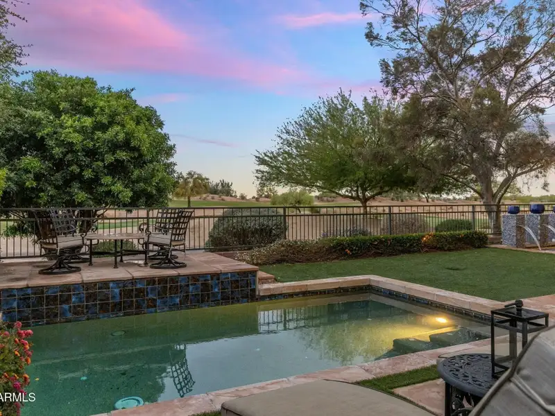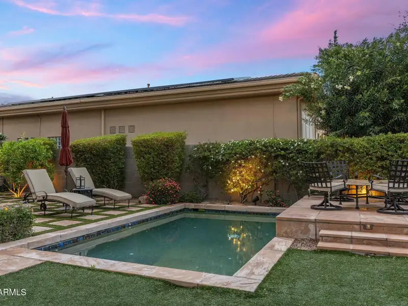 - Backyard with pool, spa, fire pit