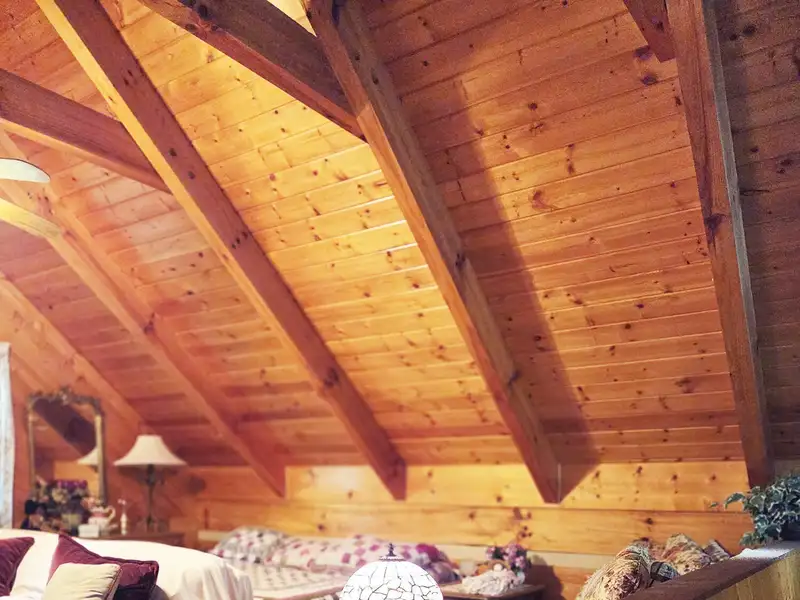 - Cathedral ceiling with exposed beams