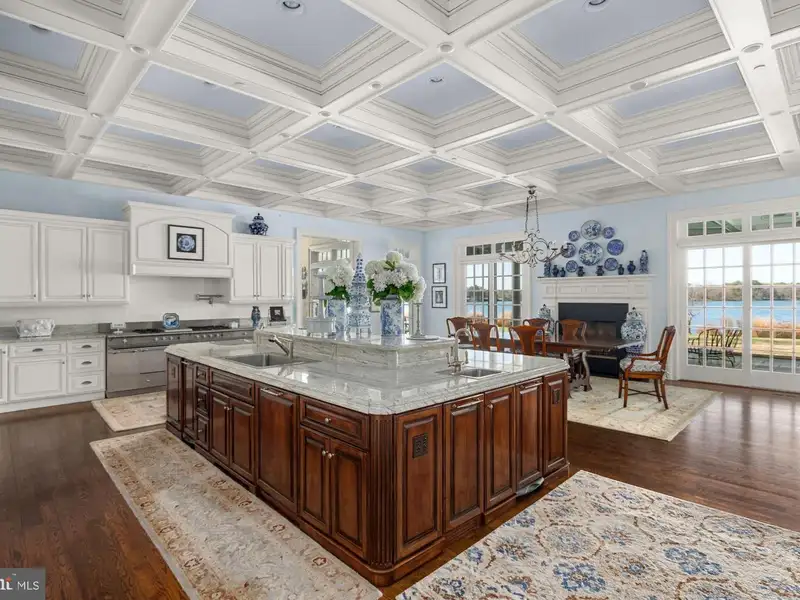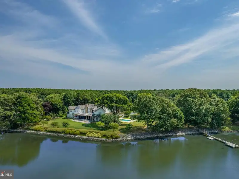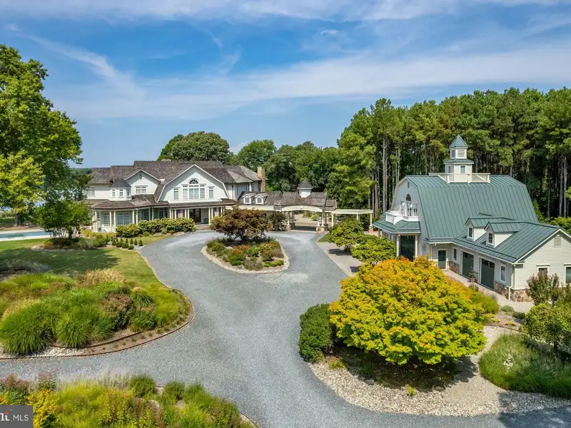 NEW PRICE! Located minutes from downtown St. Michaels, Aqua Vitae the waters of life, sits on 8.6 private acres on Harris Creek, a Chesapeake Bay tributary. This custom-built offering w/ over 400 of direct water frontage is comprised of 3 magnificent structures: a grand main residence, guest cottage, & party barn all highlighted by a waterside pool, pier w/ 4 MLW, pine grove, putting green, extensive landscaping & incomparable craftmanship. The 12,000 SF main residence, positioned to prioritize water views, welcomes you via prominent double lead-glass doors & a grand 3-story foyer w/ dual-staircase. The river room w/ 2-story octagon copula offers 270 views of the property & creek. The TV room w/ 3 exposures & gas-burning fireplace offers double French doors on two sides leading to the wrap-around flagstone patio. The stunning gourmet kitchen is a true chefs dream. Offering oversized island, built-in media/storage cabinet, coffered ceiling, fireplace, 3 sinks, double Subzero fridges w/ freezer drawers, 2 beverage drawers, 3 dishwashers, Wolf microwave & a stainless-steel Lacanche range with 6-burners, pot warmer, warming oven, & 2 ovens. Complimenting the kitchen is a large walk-in pantry w/ dishwasher, sink & extra freezer in hall. Off the kitchen is a covered porch w/ gas fireplace & ghost screens, a perfect spot to enjoy evenings. A large open dining room has 2 custom built-in display cases. The grand salon w/ bay window, gas-fireplace & intricate mantel is reminiscent of Paris. Adjoining the salon is the handsome 2-story curly cherrywood library w/ custom display cases & leaded-glass pocket doors. The adjoining climate-controlled wine room has a wet bar & storage for 750+ bottles. Wood floors flow throughout the entire main level. The main level is completed by an office, powder room & laundry to service the pool, 2 additional powder rooms, elevator to all 4 levels, mud/dog room, rear spiral staircase, guest suite w/ ensuite bathroom, & 2-car attached garage. The 2nd level offers a generous primary suite w/ fireplace & full length terrace overlooking the water. Her wing features dressing room w/ custom built-ins, separate sitting room, & a luxurious bathroom w/ marble tile, separate shower, jetted tub, & vanity. His wing offers an office w/ fireplace, paneled closet leading to separate bathroom w/ shower, travertine stone, & vanity. From his office access the 2nd level of library, open to below. Just off of the primary suite is a bar area/kitchen. 3 additional bedrooms, each w/ ensuite bathroom, and a laundry room complete the 2nd level. The 3rd level offers theater/rec room, play area, bedroom w/ ensuite bathroom, powder room, & ample storage. The lower-level houses utilities, storage, & enough room for an exercise area. The charming guest cottage sits amongst extensive landscaping. The main level offers a full kitchen, dining area, living room, sunroom, large family room, 2 bedrooms w/ shared bathroom, additional guest bathroom, & large entertaining room. Upstairs is a full bedroom w/ ensuite bathroom. The unfinished lower level offers storage. The party barn originally built for boat storage was designed to look like an old Pennsylvania barn w/ 4 of stone around the base. Flanked by 2 garage wings allowing for 4+ cars & capped w/ a cupola, the shingled-style barn has two large doors on either side of the building that allow for a trailered boat or 4+ more cars. The 2nd level is a loft w/ sleeping/living area w/ full bathroom, plumbed for potential kitchenette, front & rear terraces, & a spiral staircase to a crows nest w/ amazing views. There is a full property generator & a dog run w/ kennel just off the rear. Outside enjoy the benefits of beautiful shore living amongst the verdant grounds, mature landscaping & exceptional views. The pier offers 4 MLW & the shoreline is fully rip-rapped w/ natural plantings.