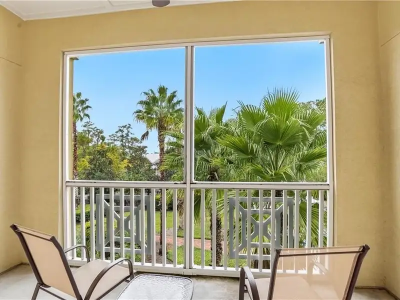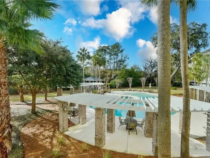 - Covered patio with pool view