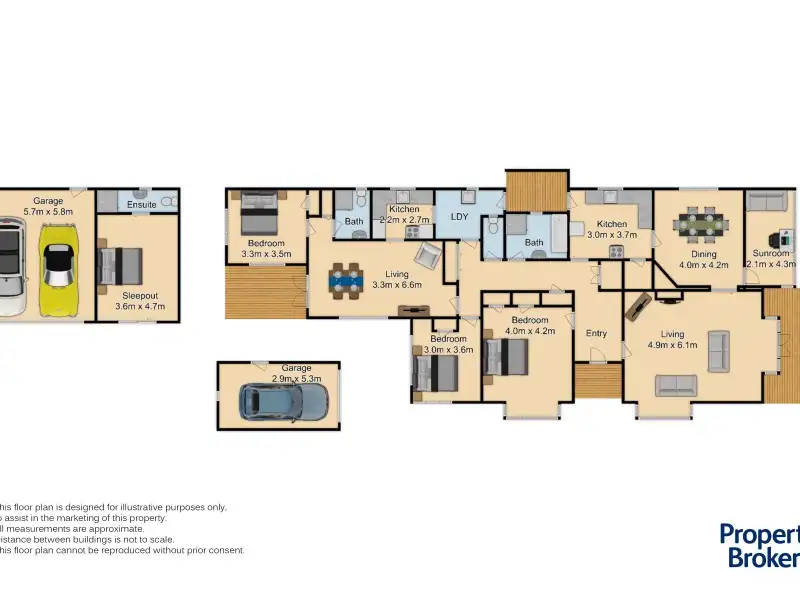 • Main home split into two self-contained wings with shared laundry