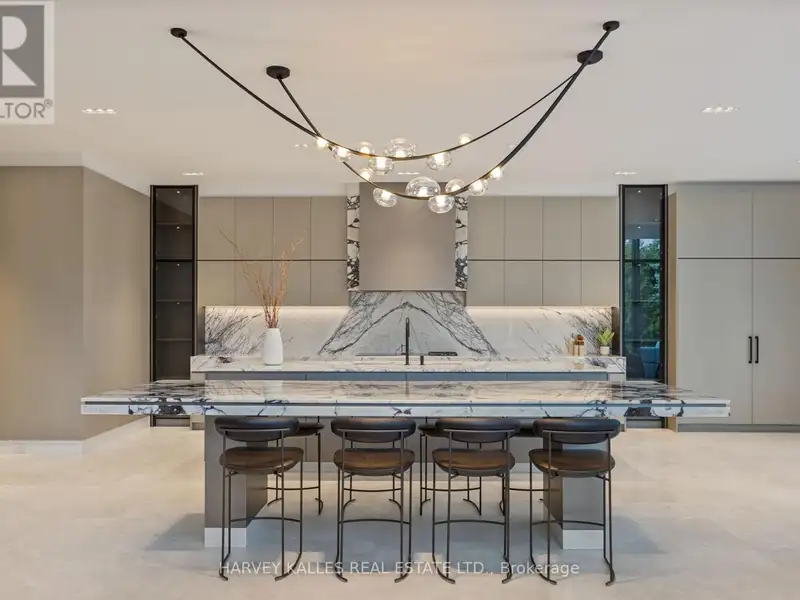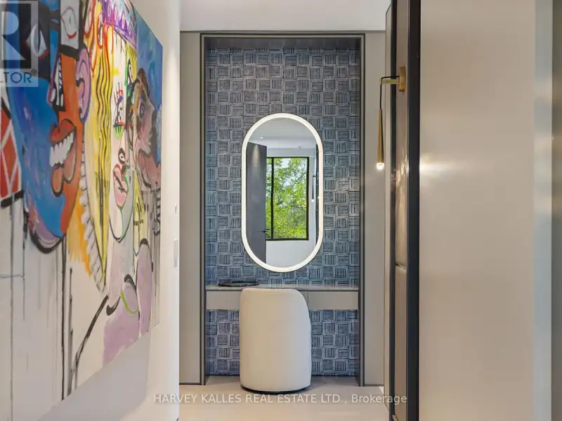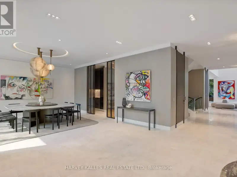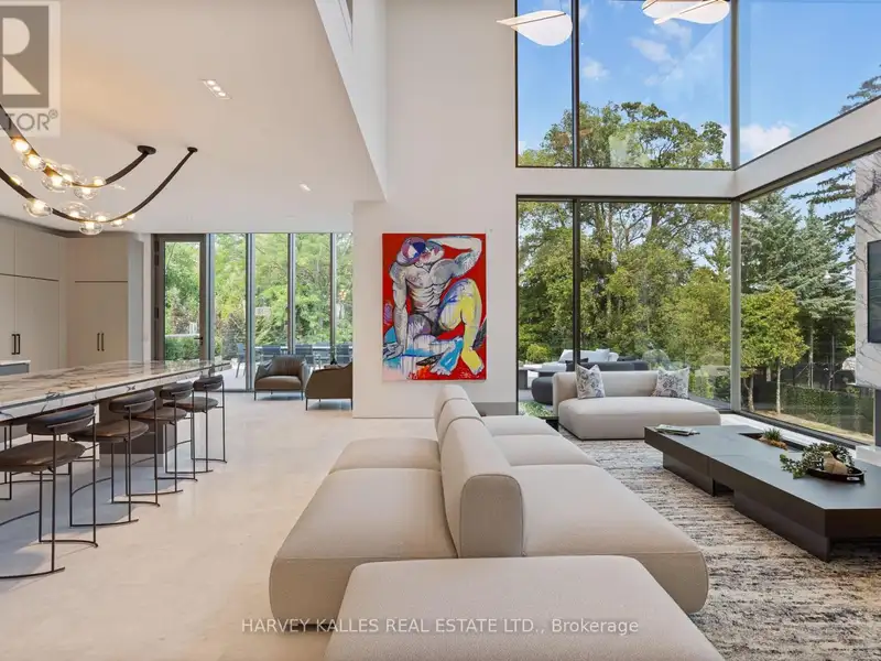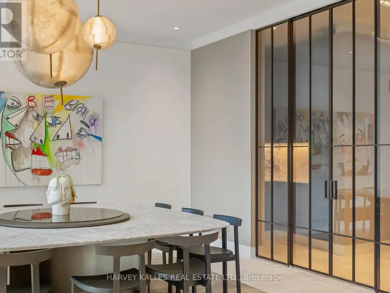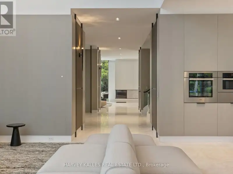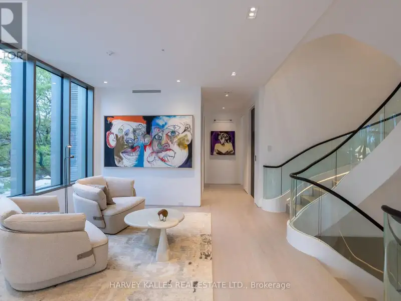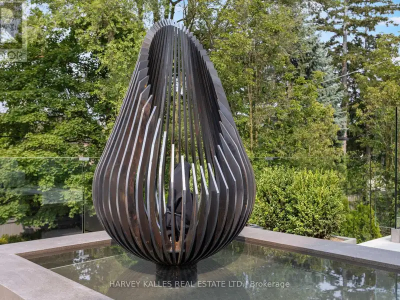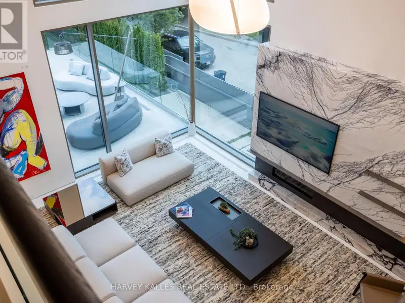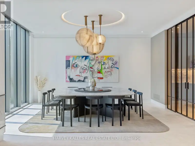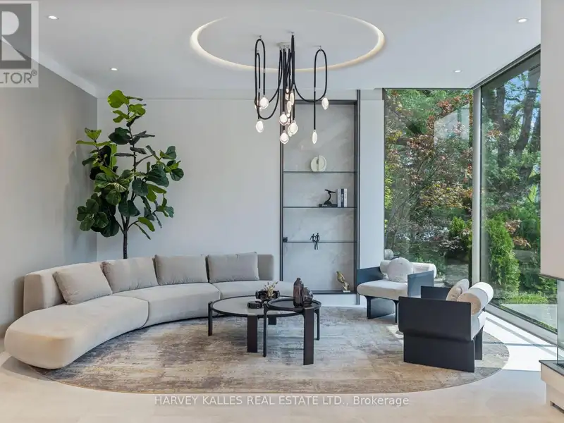 Welcome To 211 Dunvegan Rd, A Masterpiece Of Modern-Transitional Living Crafted By Omid Taba And Forest Range Developments. This Bespoke Residence Sits On A Generous Corner Lot, Offering 6,972 Sq. Ft. Above Ground Plus 2,884 Sq. Ft. In The Lower Level. Every Detail Reflects Precision, Innovation, And Refined Craftsmanship, Merging Architectural Drama With Timeless Elegance. From The Serene Gallery-Like Foyer, Sightlines Lead To The Dramatic Double-Height Family Room, Where Floor-To-Ceiling Glazing, Sculptural Lilac And Calacatta Viola Marble, And Custom Vertical Wood Panels Create An Atmosphere Both Bold And Inviting. A Seamless Flow Connects The Kitchen With Dual Marble-Topped Islands And Fully Integrated Sub-Zero, Wolf, And Miele Appliances To The Dining Area, Anchored By A 12-Seat Custom Marble Table Beneath Henges Superb All Chandelier. Additional Living Zones Include A Warm Living Room With Sky White Marble Fireplace, A Refined Study, And A Moody Lower-Level Lounge With Gym, Theatre, Bar, And Glass-Enclosed Cooled Wine Cellar. The Primary Suite Features A Suspended Fireplace, His-And-Hers Boutique Dressing Rooms, And A Spa-Like Ensuite With Cocoon Fixtures, Freestanding Tub, Steam Shower, And Heated Floors. Four Additional Bedroom Suites Plus Nannys Suite And A Third-Floor Sitting Area With Kitchenette Ensure Space And Privacy For Family And Guests. An Elevator Provides Access Across All Levels, While Radiant Heated Floors, Smart Home Automation, And Integrated Lighting And Climate Systems Offer Modern Comforts. Outdoors, A Walk-Out Terrace Features Covered BBQ, Dining And Lounge Seating Centered Around A Sculptural Firepit Above A Reflecting Water Basin With Cascading Water Into A Lower Pond. Beyond, A Resort-Style Pool And Jacuzzi With Lush Landscaping Create A Private Retreat For Relaxation And Entertainment. Artistry And Innovation Converge To Deliver A Residence Of Unparalleled Sophistication, Lifestyle, Comfort, And Timeless Design. (id:6370)