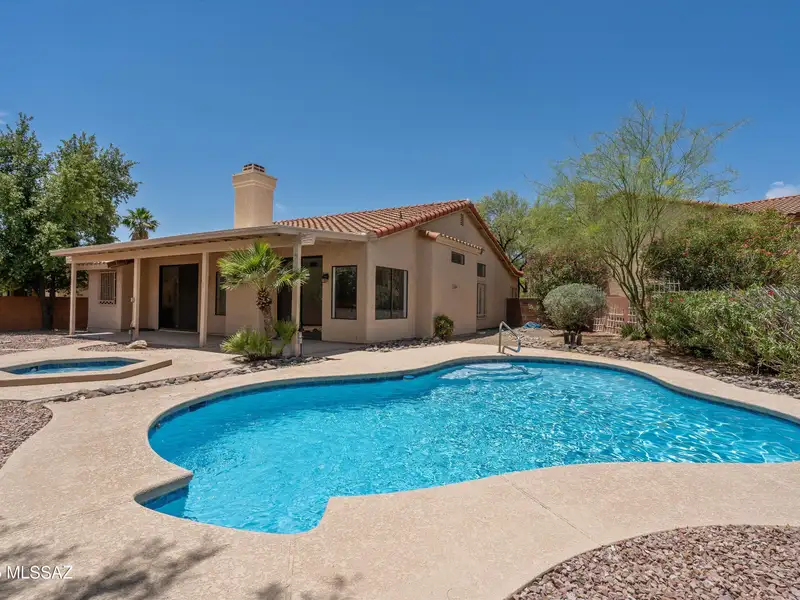 - Backyard with pool, spa, and covered patio