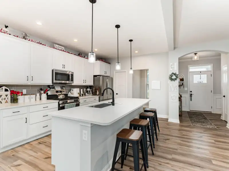 - Gourmet island kitchen with quartz countertops