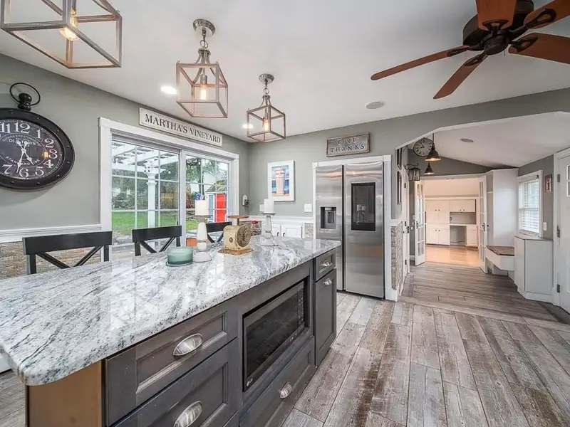- Granite kitchen with stainless appliances and island