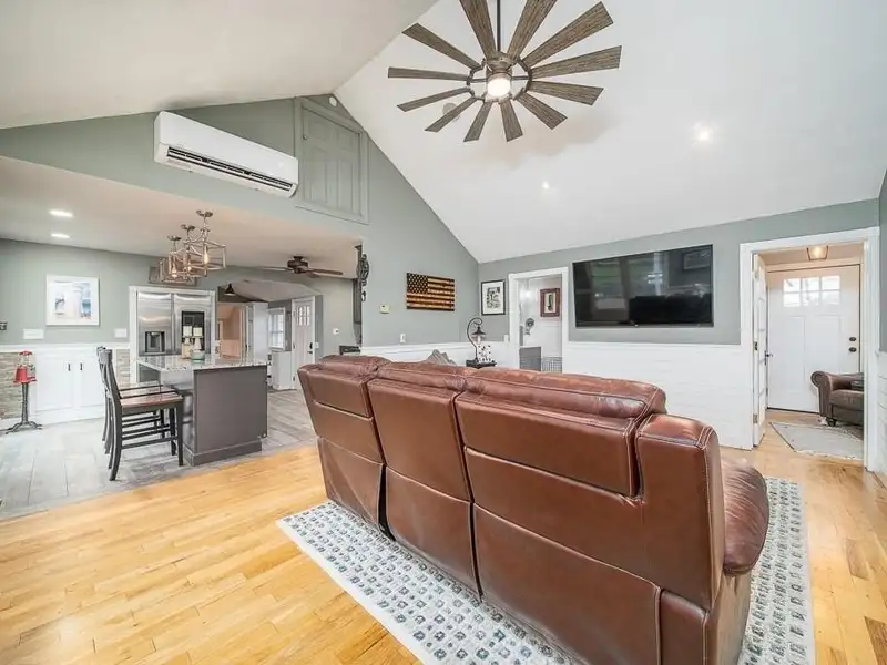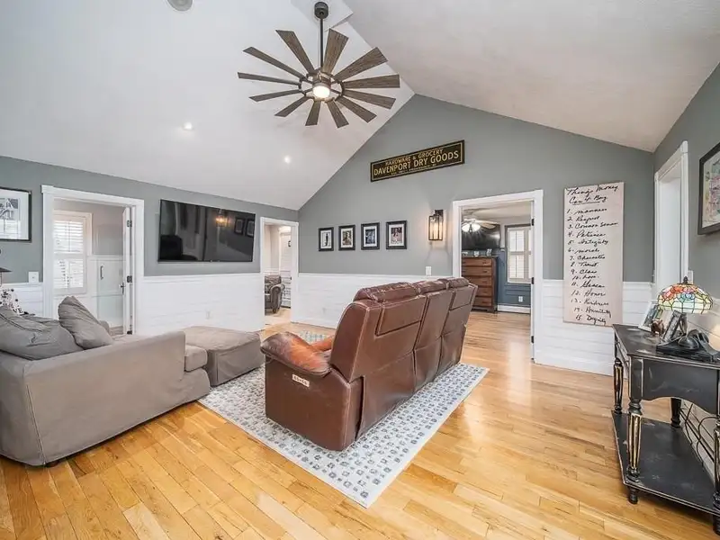 - Cathedral-ceiling family room with hardwood floors