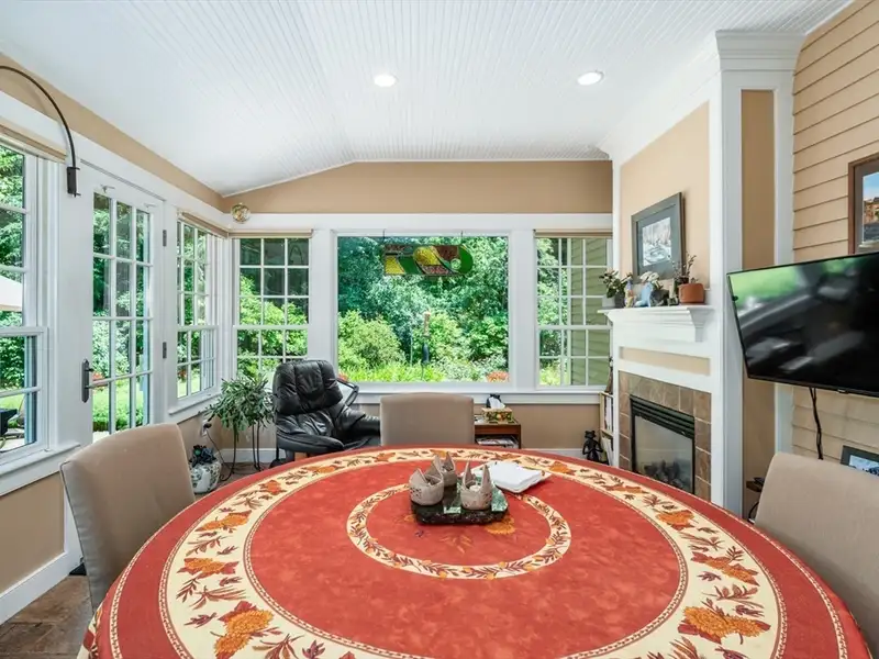 - Large 4 season sunroom with fireplace