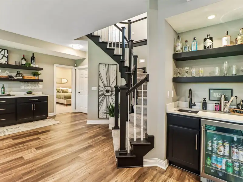 - Finished lower level with custom bar