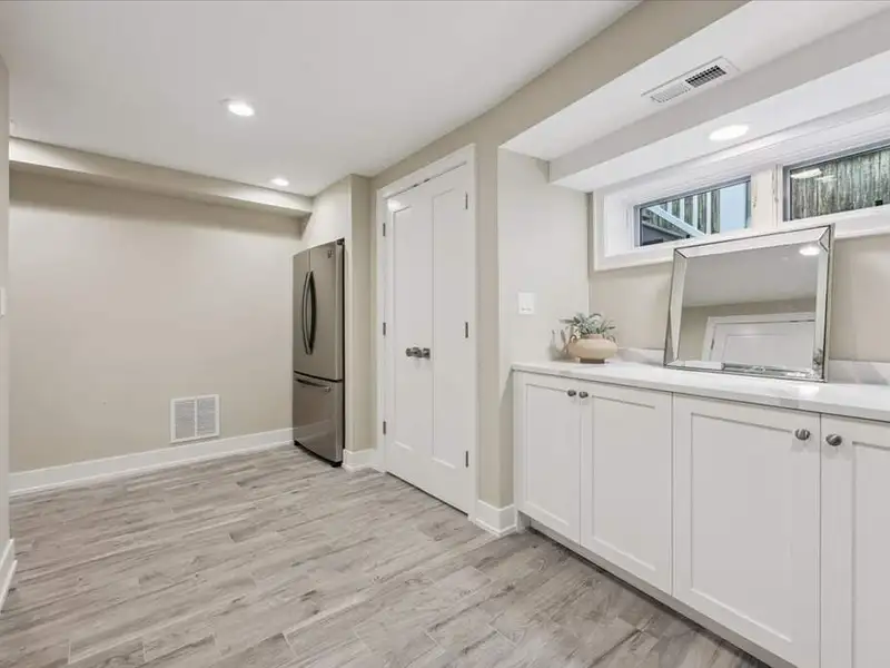 - Renovated media room with beverage center