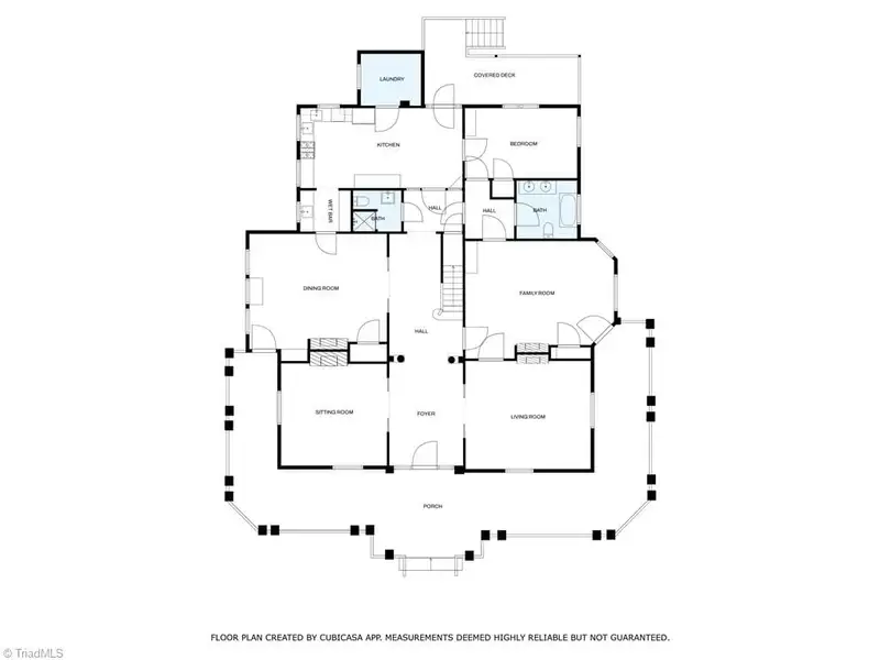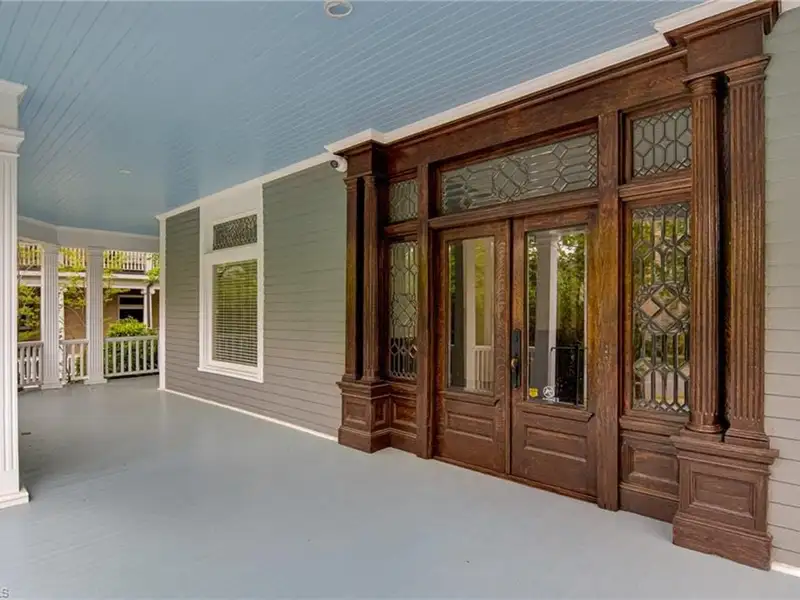 - Wraparound porch with double leaf entry