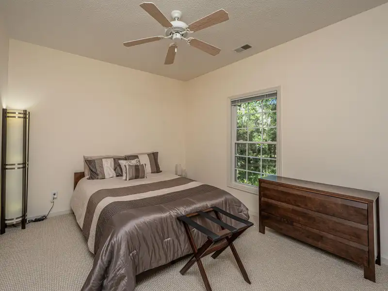 The roof on the guest house was recently replaced in December 2024, and the roof on the main house was replaced in approximately 2020. Both roofs were installed by Professional Roofing out of Bluffton, and are under warranty. There's a graveled floor firepit area complete with picnic tables and Adirondack Chairs. A fenced garden area with raised boxes is located near the