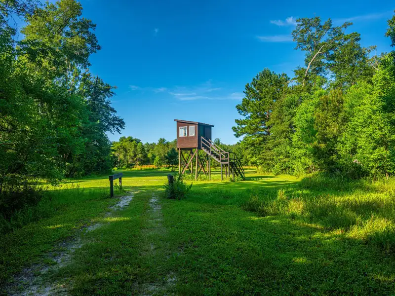 deer condominiums are located amid shooting lanes in the back of the property. Portable heaters have enabled the present owner to hunt regardless how cold the weather may be. There is a well-developed road system throughout the property to enable hunting and sightseeing. The area of River Oaks adjacent to the Combahee is a mix of wetlands, hardwood ,wetland vegetation, swamp, cypress trees, and planted pine. A 135 Yard rifle and pistol range is on the property with a heavily built commercial bullet bunker to eliminate the potential for lead contamination and to provide a safer place to zero rifles and practice shooting. As you enter the property through the electric wrought iron gate, to the right is a 2400 sq. ft. equipment shed with two electric overhead doors and adjacent to it