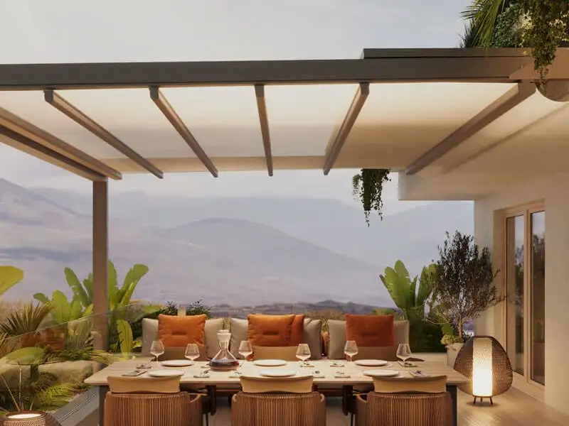 * Modern Mediterranean Architecture: Bright interiors, large windows, open-plan layouts, and panoramic views