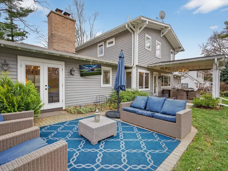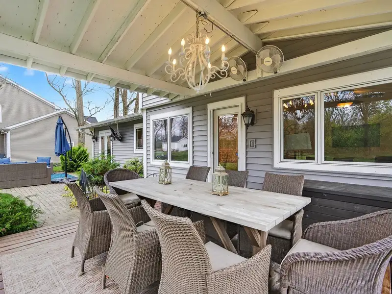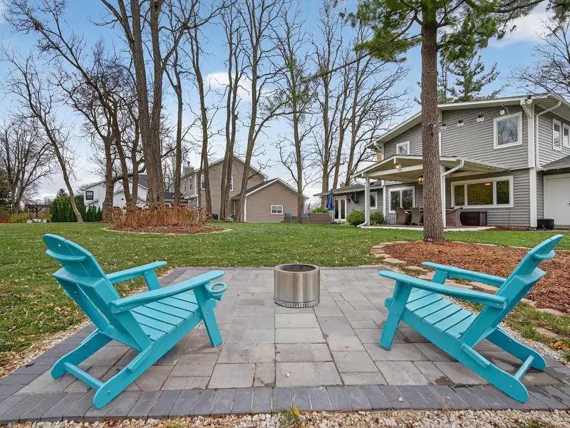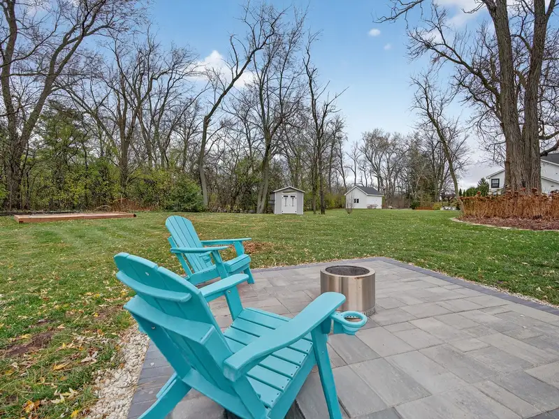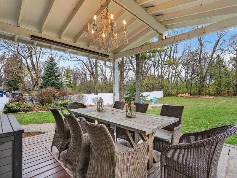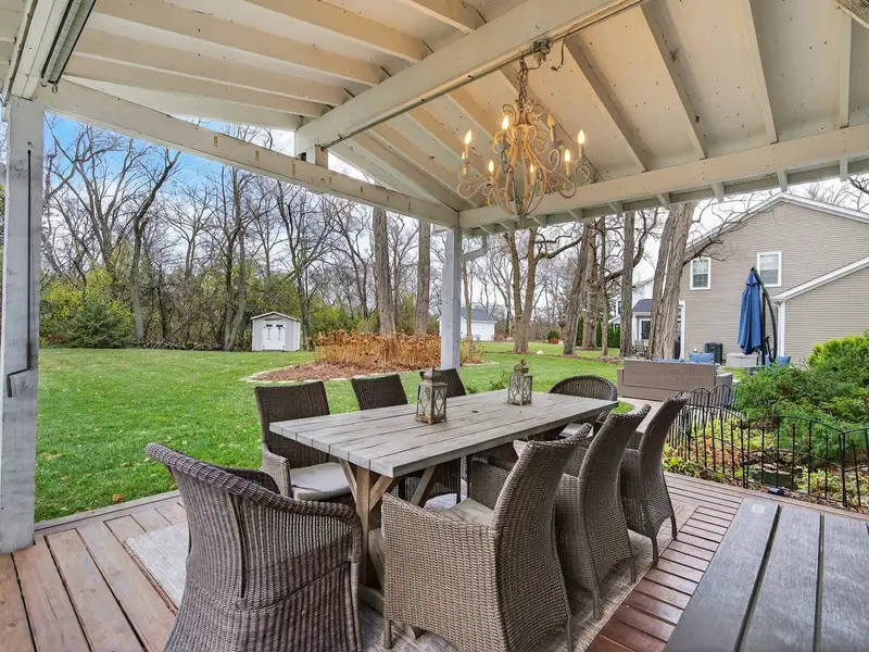 - Backyard with covered deck and fire pit