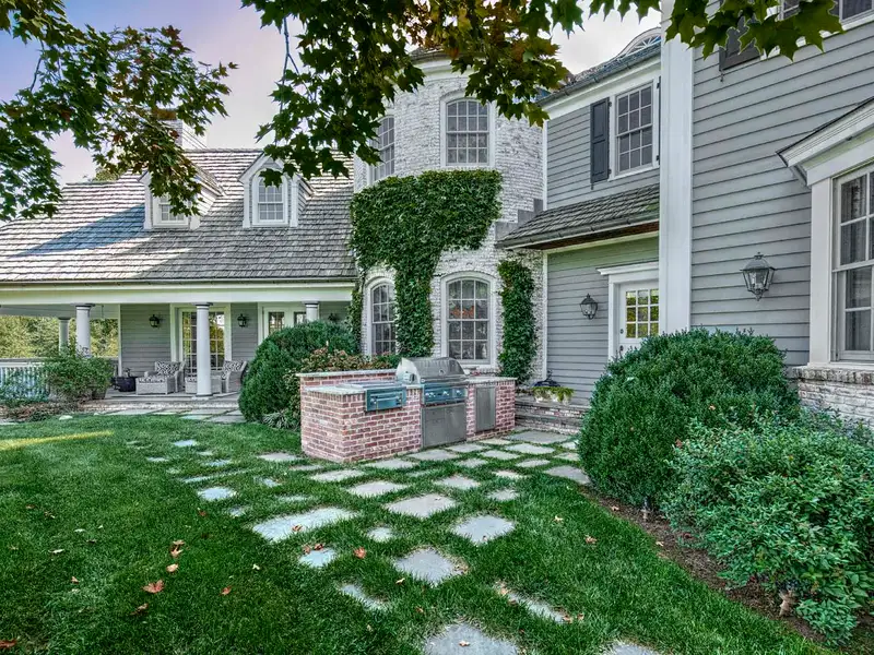 A detached three-car garage is designed with an adjacent horse barn offering three beautifully finished stalls, a kitchen, bath, storage room and access to a turn-out field. The barn's second level has a two-bedroom apartment and a separate bonus room, ideal for guests or staff. Originally built in 2000 and thoughtfully updated through the years, this architecturally-nuanced residence is finished in whitewashed brick, gray clapboard and a cedar shake roof. Its Bedminster location in Somerset County is celebrated for open green spaces, winding country roads and legendary estates, yet is only about an hour from Manhattan and approximately 45 minutes from Newark Liberty International Airport.
