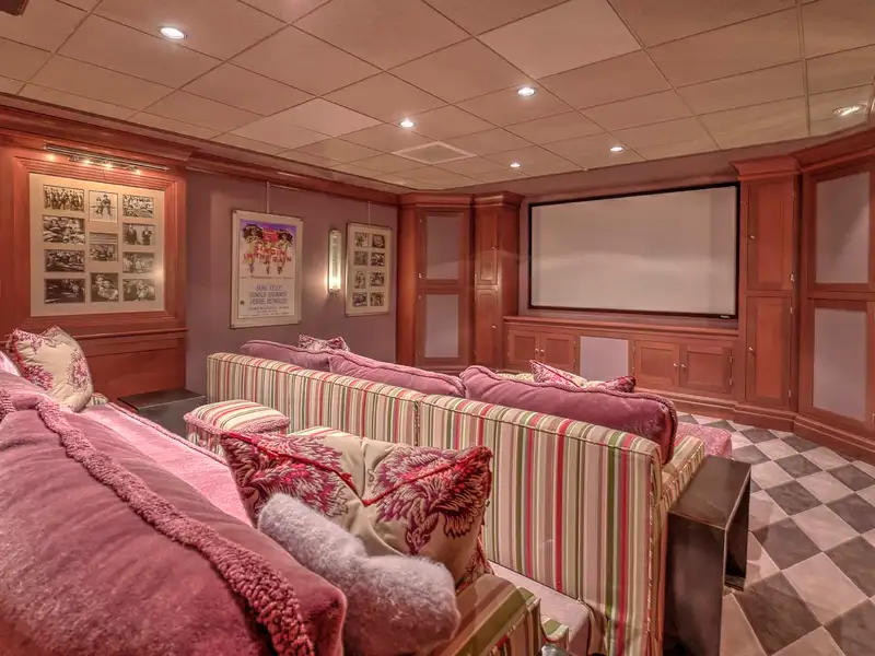 The third level was renovated in 2020 and offers a bedroom, full bath, sitting area and roomy cedar closet. The walkout lower level is accessible by stairs in both the entrance foyer and mud room area. Of special note is the Tuscany-inspired wine cellar which is temperature-controlled and provides storage for over 1,500 bottles. The beamed ceiling tasting room has a gas fireplace, terra cotta floors and a wrought iron chandelier. This level also has a home theater/media room with a wet bar, refrigerator and popcorn machine; a huge playroom; a home gym with glass doors to the yard; a full bath; infrared sauna and mechanical systems including a whole-house generator.