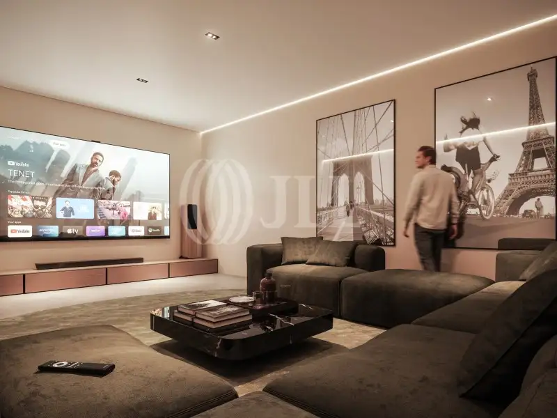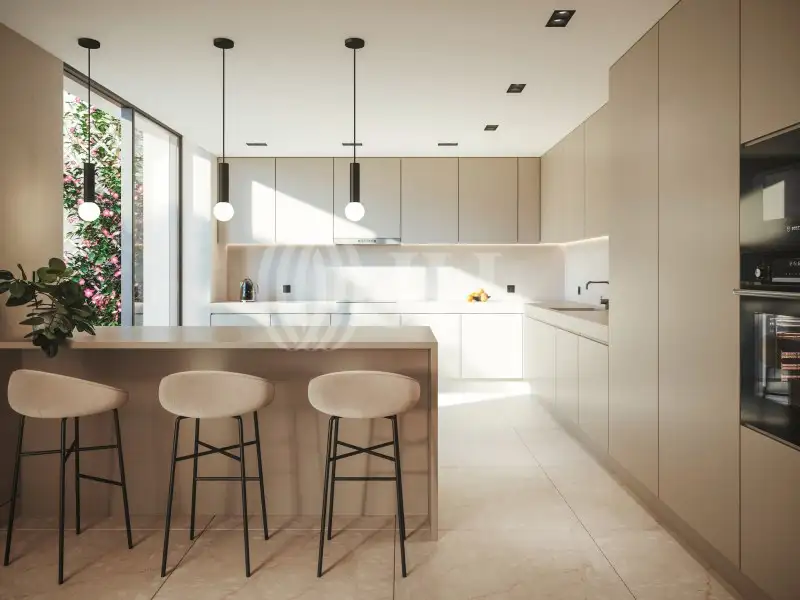 No piso -1 encontra-se a garagem para seis carros, sala de cinema, duas suítes de empregada, sala multiusos com kitchenette, lavandaria, casa de banho social e arrumos.