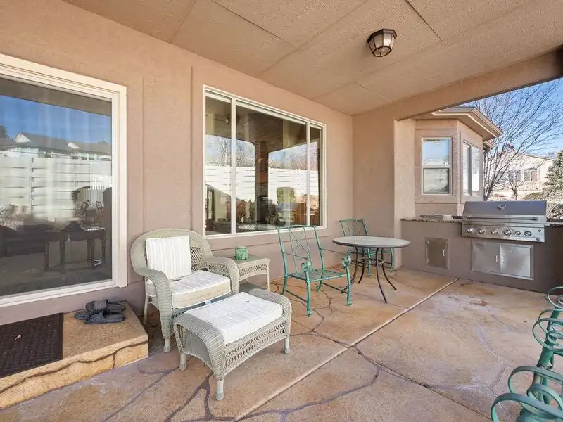- Covered patio with built-in grilling station