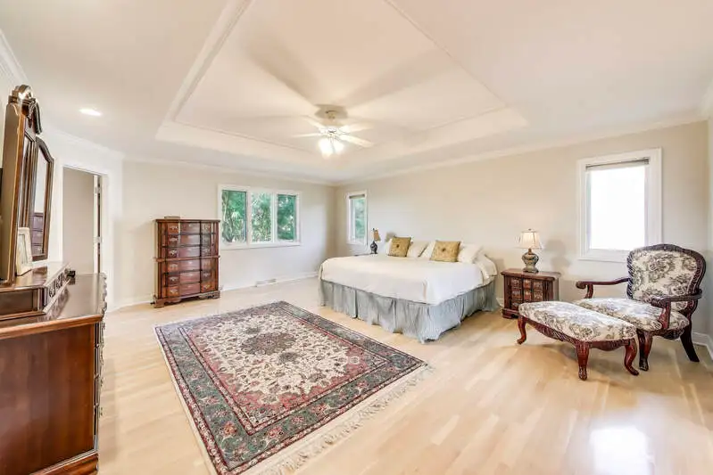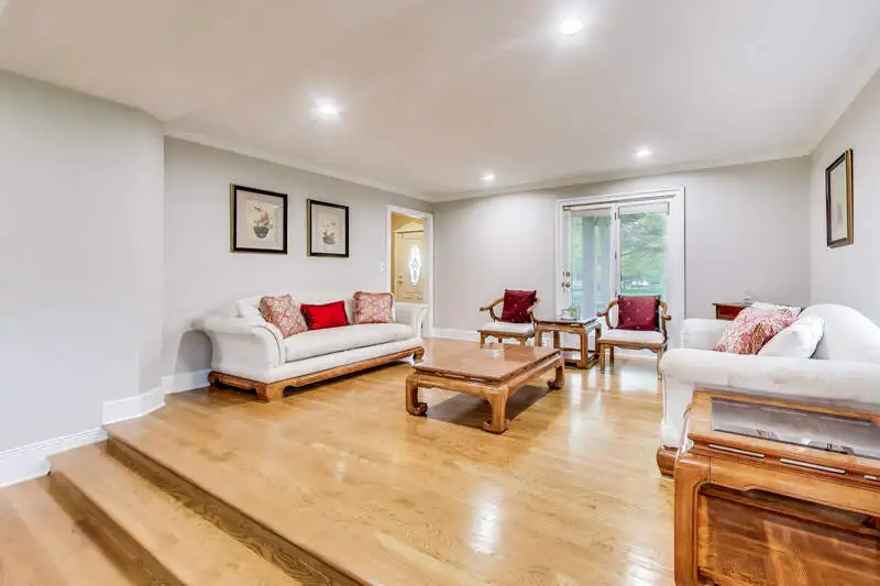 - Sunlit family room with large windows