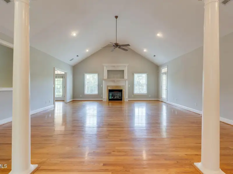 - Vaulted ceilings with gas log fireplace