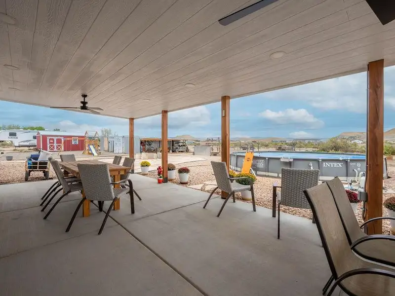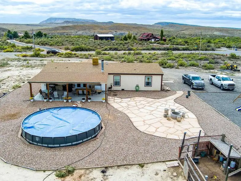 - Above-ground pool and cozy fire pit