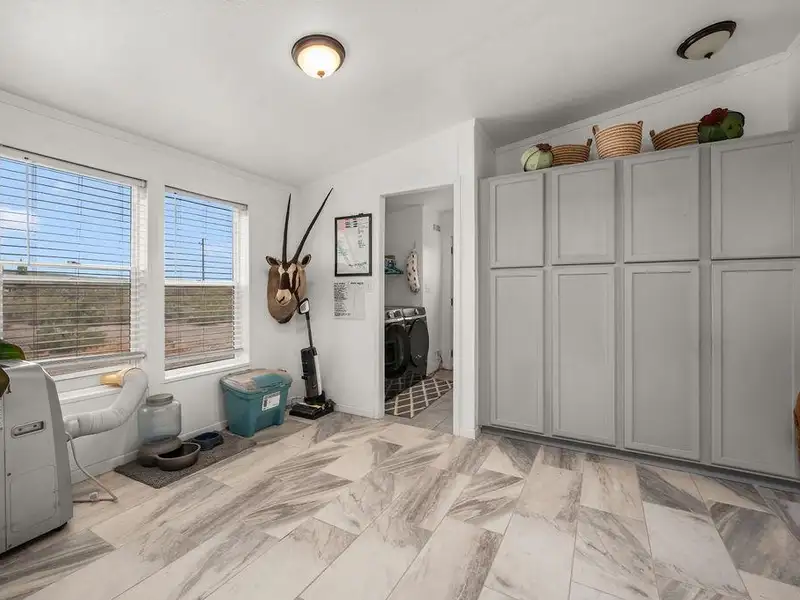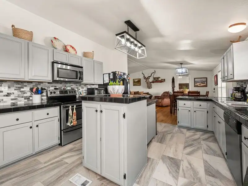 - Modernized kitchen with stylish tile backsplash