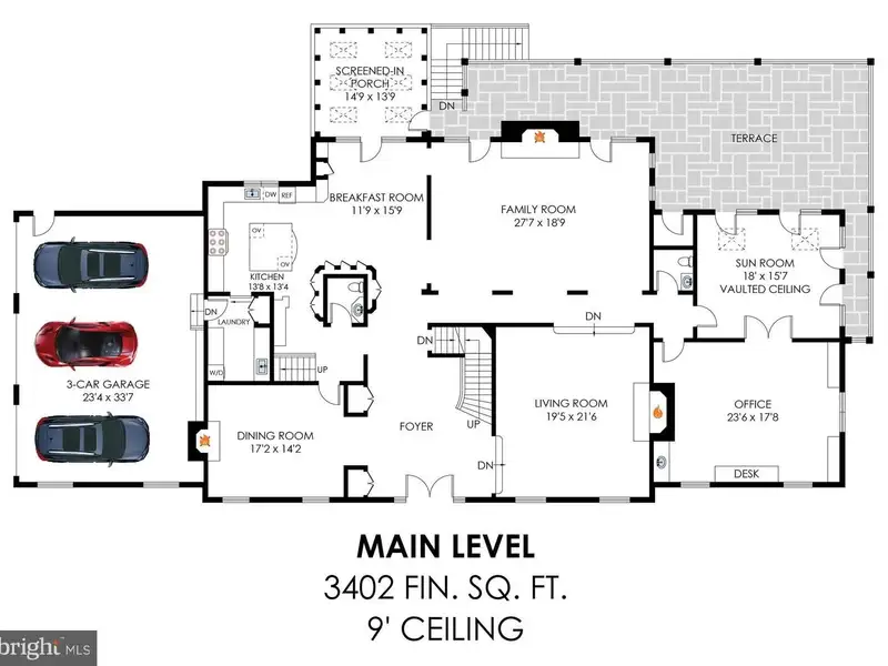 - 3-car side-load garage