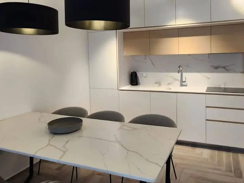 Key features of the apartments include spacious and stylish living. This modern one-bedroom apartment is 78.95m2 and has open-plan living space with a dining area and kitchen. It is complete with premium finishes, floor heating, air conditioning, a dishwasher, and a washing machine—designed to provide the comfort of a five-star hotel at home. Each floor has state-of-the-art rack rooms for optical cables and telecommunications, ensuring high-speed connectivity with complimentary Wi-Fi in common areas and 55 SAT channels in every apartment.