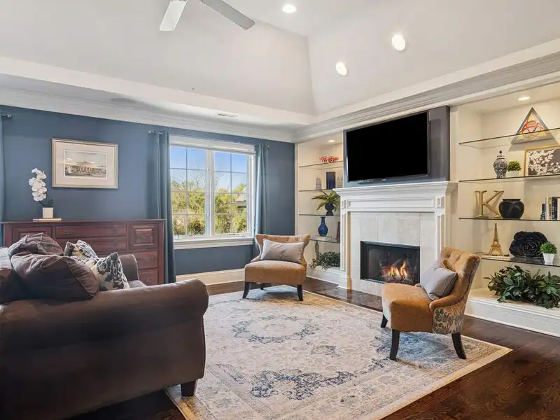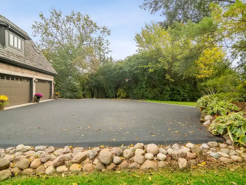 Experience timeless sophistication and contemporary convenience in this stunning 6,577-square-foot residence on 1.29 acres, ideally located in the serene North Barrington community, Haverton on the Pond. Meticulously maintained, this fully brick home offers five bedrooms, four full bathrooms, and two half-bathrooms, seamlessly blending refined design with everyday functionality. Step inside the grand foyer, where a grand staircase with wrought iron spindles, soaring two-story ceilings, and stunning dark hardwood throughout the main and second levels set the tone for the home's elegance. The gourmet kitchen impresses with a large marble island and slick black granite countertops, custom soft-close cabinetry, reverse osmosis water filtration, and high-end appliances including a Sub-Zero refrigerator and Thermador Professional gas range with 6 burners and a griddle-perfect for the passionate home chef. Around the corner, the butler's pantry features matching cabinetry and countertops to the kitchen, a wet bar, and beverage fridge. The eat-in kitchen and breakfast room with access to the patio seamlessly combine into the expansive two-story living room, centered around a stone gas fireplace, creating an inviting space for both relaxation and entertaining. The dining room and living room showcase stunning crown moldings and wainscoting, and the library/office features french doors, built-in bookshelves, wainscoting and coffered ceilings. Convenience abounds with a main-level laundry/mudroom-doubling as a half bath-equipped with Whirlpool washer/dryer, stone counters and floors, custom cabinetry, sink, built-in cubbies, and direct garage access. The primary suite offers a private sanctuary, featuring a gas fireplace with a granite hearth and built-ins, wet bar with travertine countertops, a luxurious spa bathroom with a jetted Whirlpool tub, large steam shower, heated stone floors, separate vanities with custom cabinetry and travertine countertops, and enormous walk-in closet with an adjacent private workout room for ultimate convenience. Upstairs, three additional bedrooms with vaulted ceilings and walk-in closets include one ensuite with limestone vanity and shower/tub combo, plus two sharing a thoughtfully designed Jack-and-Jill bath with marble countertops, shower/tub, and a separate toilet room behind a pocket door; one of these bedrooms also enjoys a charming third-story loft with hardwood floors. The fifth bedroom is located in the fully finished walkout basement. The walkout basement also features a full bathroom, stylish full bar with granite countertops, a wine cooler, microwave, and heated stone floors, a living area with a gas fireplace, wine cellar, and a dedicated media/theatre room. The four-car garage, professionally epoxy sealed and gas heated, offers ample space for vehicles and storage. Outdoors, the beautiful professionally landscaped yard features irrigation and landscape lighting systems, and a brand-new asphalt driveway with concrete ribbon enhancing the overall curb appeal. Enjoy breathtaking sunset views over the pond from the two brick paver patios connecting the main and lower levels with gorgeous brick and stone steps. Additional exterior features include a gas grill hookup, invisible fence, spring-free trampoline, and she-shed-all included in the sale. Located just 35 miles from Chicago, minutes from shopping, dining, and everyday conveniences, less than a 10-minute drive to Downtown Barrington and the Metra station, and in the highly awarded Barrington School District 220, 165 Haverton Way offers an extraordinary combination of luxury and practicality. Schedule your private tour today-this North Barrington masterpiece won't last long.