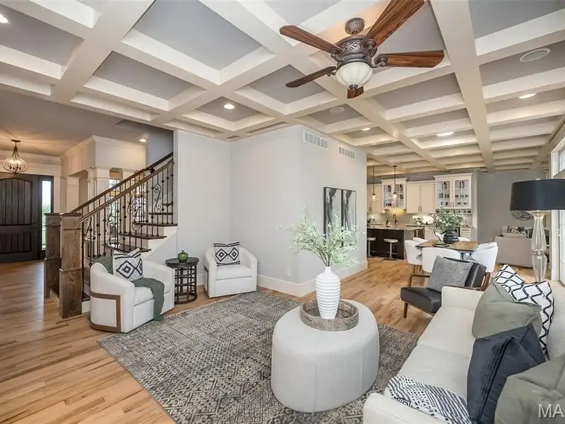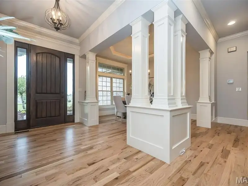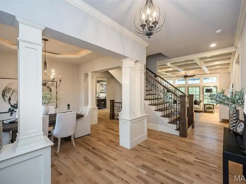 The Birchwood at Bates Bend - This site is in the prime location of Dardenne Prairie and is the Builder's personal residence. The Estate Lot is 1.8 Acres with an irrigated and pampered lawn where the residence is positioned 250 feet from the road for a grand approach and free of HOA rules. Destined for parties for a crowd or just impromptu fun. The front meadow is ready for wedding tents, family soccer tournaments and a future pickle ball court could easily be in your dreams for the rear extensive lawn area. The long driveway becomes the Red Carpet for any event. All that is missing is the paparazzi! *****The Inspiration of the Birchwood Residence was a collective effort of Architect Larry Spraul of LR Spraul Designs, and Custom Builder Tim Griffey of Griffey Custom Homes. The overall theme was to incorporate three loves: “The love of the outdoors”, “Comfortable, yet dramatic spaces”, and “The celebration of fine craftsmanship” that is displayed throughout the home. The inspiration and careful direction of the concept resulted in a special home to share with family and friends, from small gatherings to large memorable events. So many memories are awaiting….. The positioning of the structure led to the creation of several exterior zones: The large meadow has been home to pampering all guests including the 2 resident labs who have worn out the owners with their mastery of “Fetch”. You could also evolve into a skilled “referee” for family football and be rewarded with a whistle to control the crowd. The aluminum fenced rear yard has proven to keep the 4-legged residents and a herd of wild grandchildren corralled and is large enough to have court sports and a pool. .......The yard flows to the right of the home to a private patio area from the walk-out lower level with an additional 2,361 square feet of high ceiling spaces to ignite your imagination. When the pups and kids are coated with the remnants of their outdoor fun, the Family Entry has a pet and people shower center for their re-entry into the pampered world of the interior. The Family Entry contains the perfect drop zones, the Expansive Laundry Center and quick Powder Room access. The finishes are exceptionally executed in every area of the home. From the Main Entry you have a sense of what lies within. The Main Level features 10-foot Ceilings, 8 Foot Doors, and job finished hardwood floors throughout the public spaces and owner’s private spaces. The craftsmanship begins with sleek box beamed ceiling treatment, architecturally correct window surrounds featuring transoms with cross head crowns and 8-inch base trim. The design is sleek and sculptural, with details that will easily embrace a traditional to a polished contemporary setting. This is not a vanilla box by any means. Every corner, every view, leaves something to be discovered. The East Wing of the Main Floor is dedicated to pampering the Owners at every turn. There is no fighting over closet space with two primary custom closets and a place for every shopping treasure. The Bedroom contains a large salon setting with fireplace and pocket doors that lead to a flex space with a breath-taking soaring hardwood ceiling. The owners used the space for a home office, but it could easily be a private den or library. The Owner’s Suite features every item the resident royalty would demand. The shower has room for a crowd, and the acoustics could be perfect for your morning American Idol rehearsal. The large lounging tub overlooks your wooded backdrop. You may be tempted to bring a towel. Review the extensive photography for a complete understanding of what this property offers: An Open Concept that captures the views and flows from Great Room, Private Dining Room, Family Dining, an Island that seats 8 comfortably, a fireside Hearth Room, a Kitchen that has everything including a walk-in butler pantry. Every space gives you the feeling of walking through a magazine. Owner is a licensed agent. Enjoy!!!