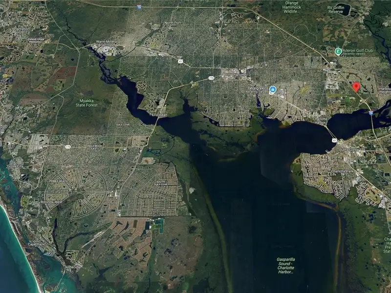 7.59 Acres of residentially zoned (RE1) land located in Suncoast Estates—an ideal spot to build your custom dream home and enjoy the Florida lifestyle with no HOA fees or deed restrictions. Situated at the end of the street, this property offers added privacy and a peaceful setting. Conveniently located off Kings Highway, you're just minutes away from a wide variety of shopping, dining, and entertainment options. For boating enthusiasts, Charlotte Harbor and public boat ramps are less than a 10-minute drive, allowing you to enjoy the water while still living on spacious acreage. Many new homes are being built in the surrounding area, making this a great opportunity for investors to add a prime piece of land to their portfolio. According to Charlotte County GIS, the property is not in a Scrub Jay mitigation area. Commuting is easy with both US-41 and I-75 just 5 minutes away, offering quick access to nearby areas and attractions. The property is also close to the Sunseeker Resort, Downtown Punta Gorda, Port Charlotte Town Center, Charlotte Sports Park (home of the Tampa Bay Rays Spring Training), and numerous restaurants and golf courses—enough to play a different one each day of the week. Best of all, you're only 30 minutes from some of Southwest Florida’s most beautiful beaches. Don’t miss your chance to own this piece of acreage in a growing area—schedule your showing today!