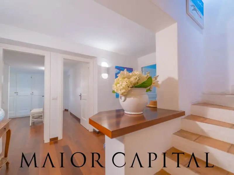 The villa is surrounded by a private park of approximately 4,000 sqm, enriched by lush Mediterranean maquis and a well-tended garden that guarantees total privacy. Access to the property, which opens onto a green lawn, is made even more spectacular by a driveway leading to the entrance patio, embellished with vibrant bougainvillea in bloom. From every corner of the house, you can admire the magnificence of the sea, the view that changes every hour of the day, and the feeling of peace that only such an exclusive location can offer.