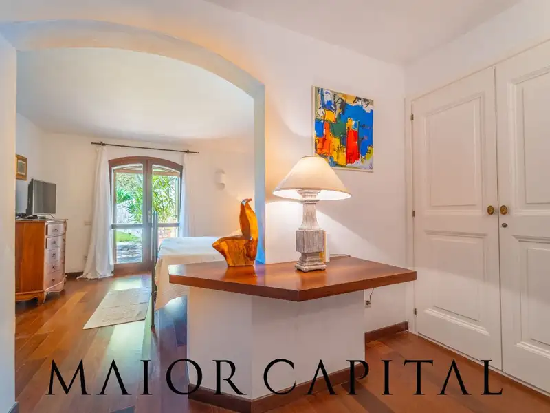 The villa is spread over two floors. On the ground floor, in addition to the large living room, there is a separate kitchen, custom-designed and perfectly integrated into the architecture of the house, with access to a large covered patio with a barbecue area, ideal for dining with friends. Also on the ground floor, a spacious master suite, surrounded by greenery, offers an elegant private bathroom and maximum comfort.