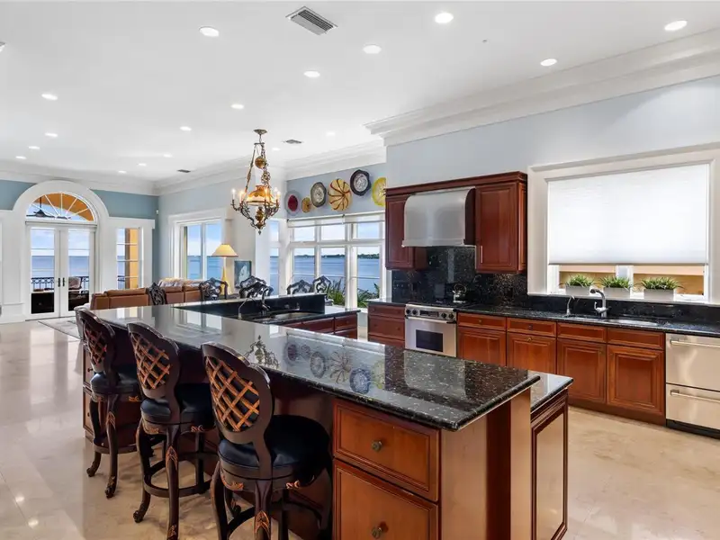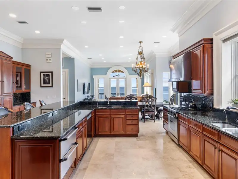 - Chef’s kitchen with custom cabinetry and premium appliances