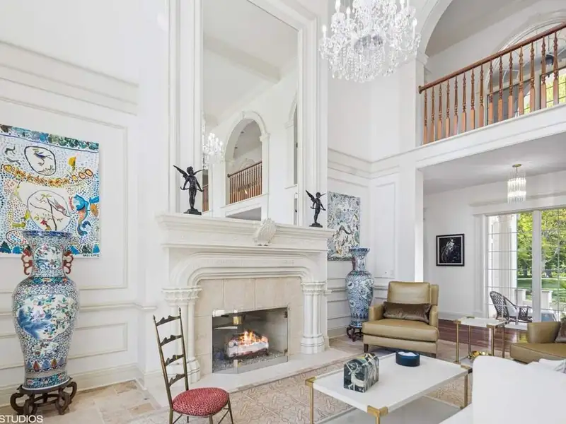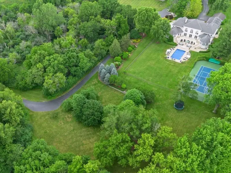 An Architectural Masterpiece in the heart of St. Charles - Step into glamour and sophistication at the illustrious Masco Estate-an exquisite residence envisioned by renowned architect, Scholz Design, and masterfully constructed in 2003, this estate is perfectly positioned just 35 miles west of Chicago, this stately sanctuary is nestled in the storybook landscape of St. Charles, Illinois. Approach via a secluded private lane, crossing a picturesque bridge over the tranquil Ferson Creek, and pass through elegant wrought iron gates into a world of splendor. Set on over 9 lush acres of manicured grounds and flourishing gardens, this distinguished Burr Road estate presents an unmatched lifestyle offering both grandeur and serenity. At the heart of the property lies the principal residence, encompassing over 12,000 square feet of refined living across three impeccably finished levels, including a full walkout lower level. This estate artfully blends old-world craftsmanship with modern luxury. Upon entry, be captivated by a 22-foot soaring great room, framed by Palladian windows, adorned with two sparkling crystal chandeliers, and anchored by a stately fireplace set in rich marble. Gorgeous travertine flooring and woods flows throughout, guiding you into the bespoke gourmet kitchen-a chef's haven boasting extensive maple cabinetry, high-end appliances, gleaming granite countertops, and a sunlit breakfast nook with panoramic views. Architectural brilliance continues in the rotunda-style turret, showcasing a cozy fireplace and terrace access-perfect for intimate gatherings or quiet reflection. The lavish first-floor primary suite is a private retreat, complete with an opulent ensuite, sitting rooms, a wet bar, private patio, and a dedicated staircase descending to a private gym. The adjacent executive office/library is a study in refinement, featuring custom millwork, fireplace, and it's own tranquil and private patio overlooking the expansive side lawn-an ideal blend of form and function. Additional amenities include dual laundry rooms on the main and lower levels for effortless convenience. Upstairs, new wool carpeting leads to four generously proportioned ensuite bedrooms, each offering privacy and elegant finishes. An expansive covered veranda on this level provides sweeping views and a perfect setting for entertaining. The walkout lower level is a destination in itself-designed for hosting and relaxation with a handcrafted Irish-imported oak bar, climate-controlled wine cellar, recreation spaces, gym, vault room, two fireplaces, and a full bath. Outdoors, this estate is equally impressive. Lounge by the resort-style pool and hot tub (with new liner and cover in 2023), entertain on the two-tiered stone terrace and loggia, or gather around the cozy fire pit. For the sports enthusiast, enjoy tennis, basketball, and pickleball courts-resurfaced in 2025 for basketball, pickleball and tennis -- all within your own private grounds. A highlight of the estate is the remarkable 2,450-square-foot Bank Barn, ideal for a home business, studio, or future guesthouse. Once a single family home & office (has it's own address), this barn has five bedrooms, three bathrooms and two kitchens. Featuring 24-foot vaulted ceilings, a dramatic balcony with sunset views, walkout lower level, and an attached garage, the barn is a separate three-car garage with epoxy flooring, AC, and a finished loft. Perfectly positioned with two private entrances, this one-of-a-kind estate offers close proximity to PGA event courses such as Medinah Country Club, St. Charles Country Club, The Hawk Country Club, Dunham Woods Riding Club, Leroy Oaks Forest Preserve, the Randall Road corridor, and the private DuPage Airport-all within the acclaimed St. Charles School District 303. This is more than a home-it's a legacy property and a rare opportunity to own one of St. Charles' most iconic estates. Call to schedule your private showing today.