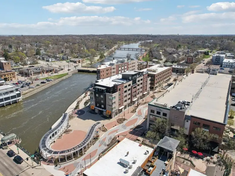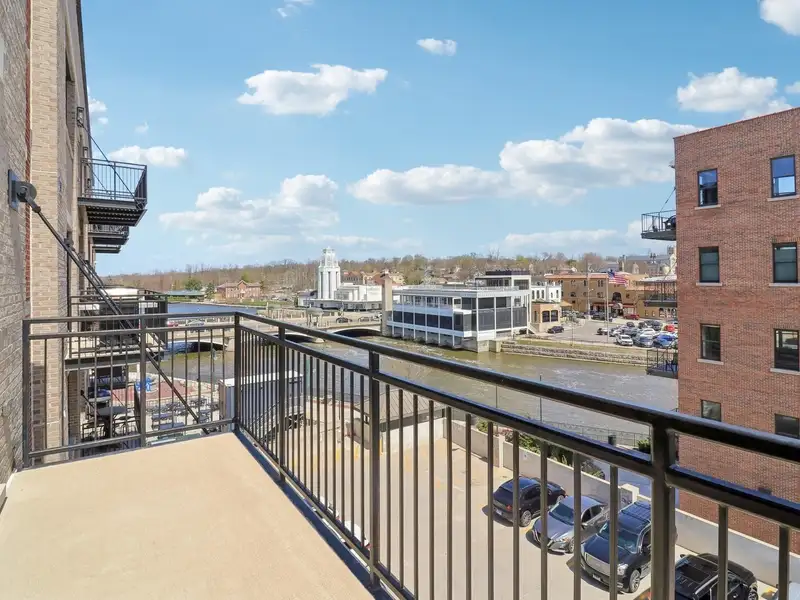 - East-facing terrace overlooking Fox River