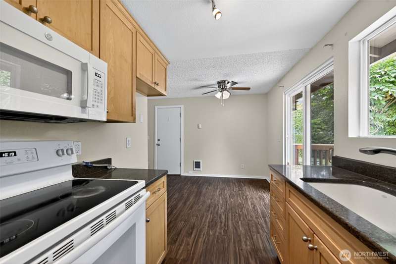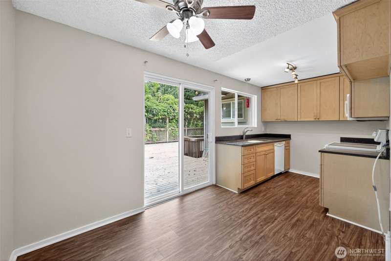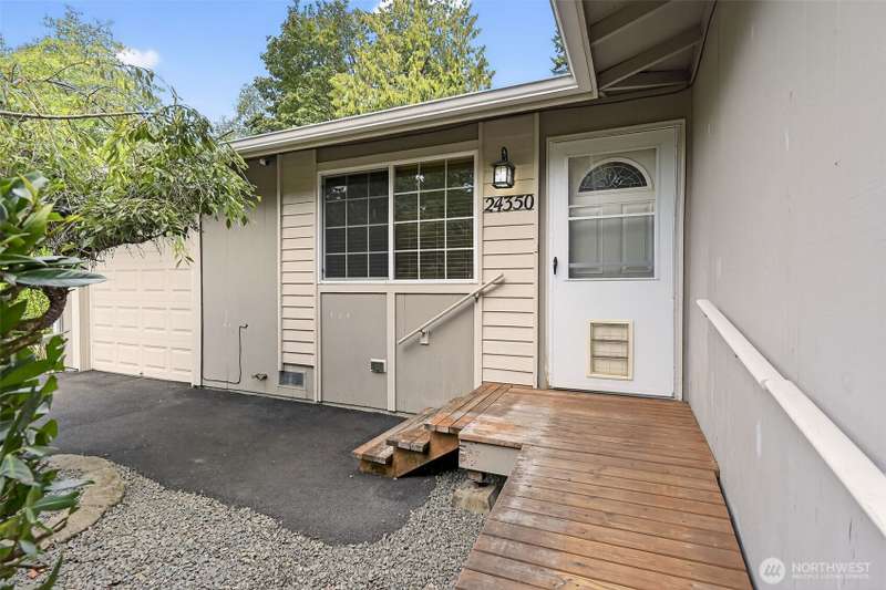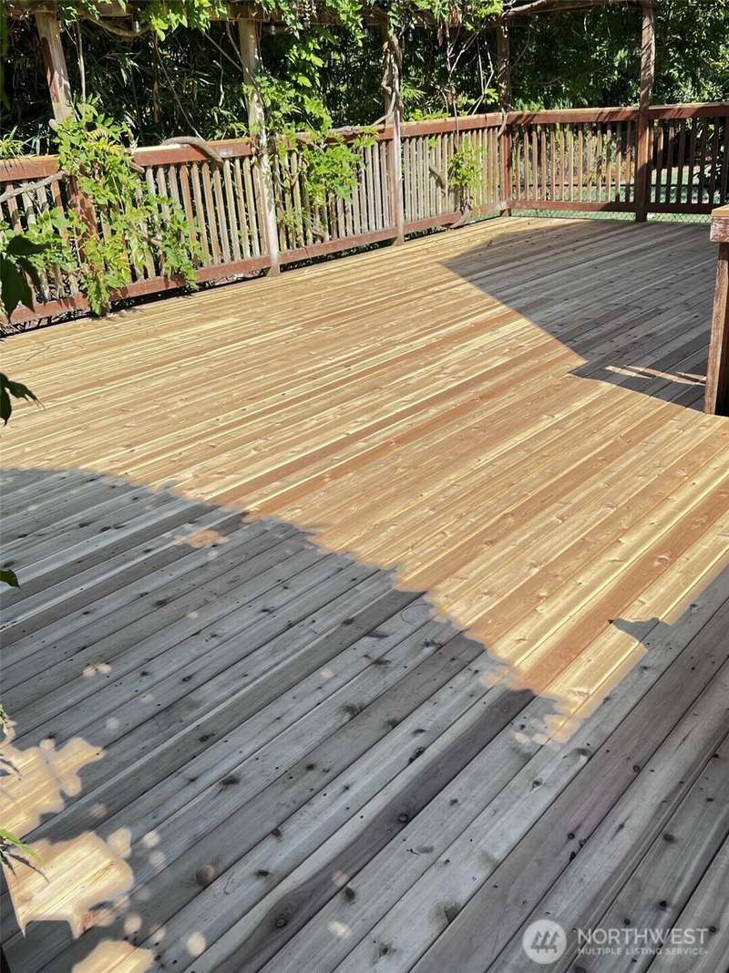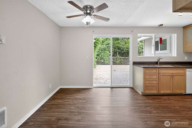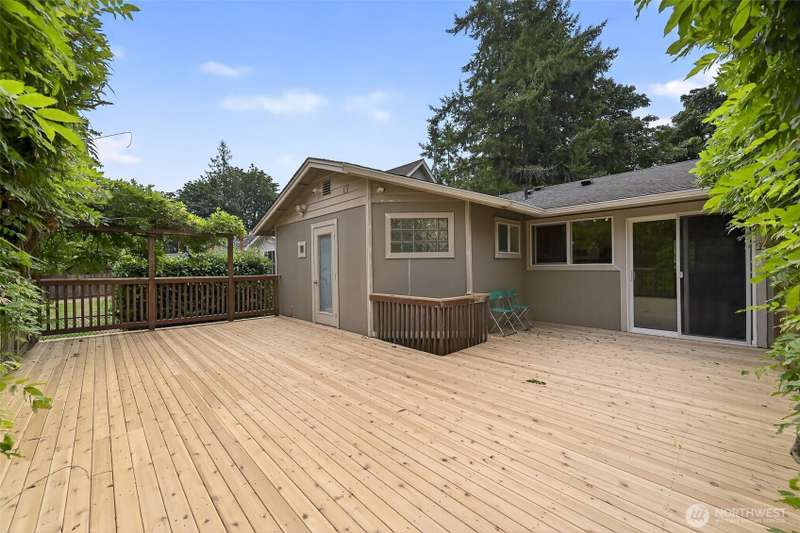Truly Move-In Ready! Darling rambler on fully fenced shy quarter acre lot is painted neutral, timeless color, w clean white millwork/trim and warm dark flooring or new carpet throughout. Comfortable modern ceiling fans, on-trend lighting, and shiny clean plumbing fixtures. Two full baths, one featuring a garden tub are both spacious and in impeccable condition. Efficient kitchen which features light maple cabinets, lightly used appliances, and undermount sink, flows easily into dining room with slider opening to the deck- perfect space to dine al fresco! Deck is brand new cedar, overlooking the breathtaking backyard, surrounded by vine covered trellis. Community Beach access is off Taree Dr and it's a short jaunt to Apple Tree Cove!