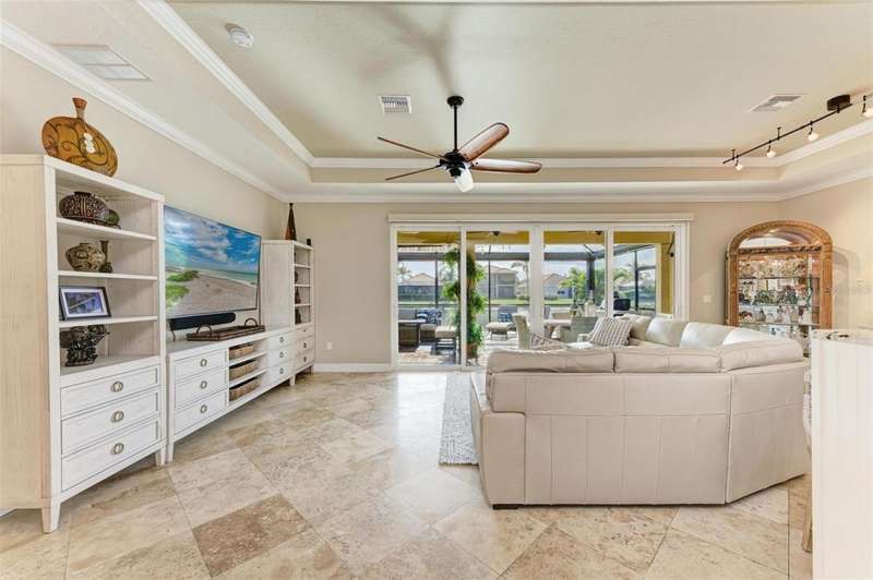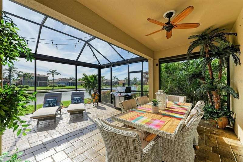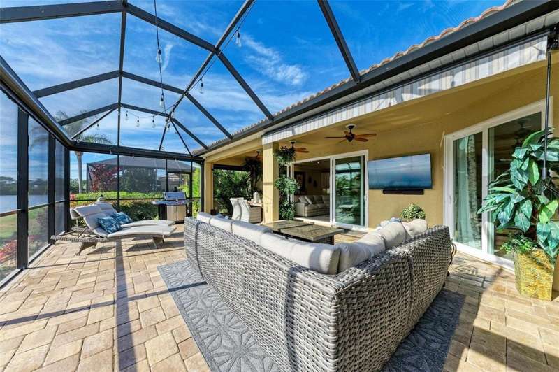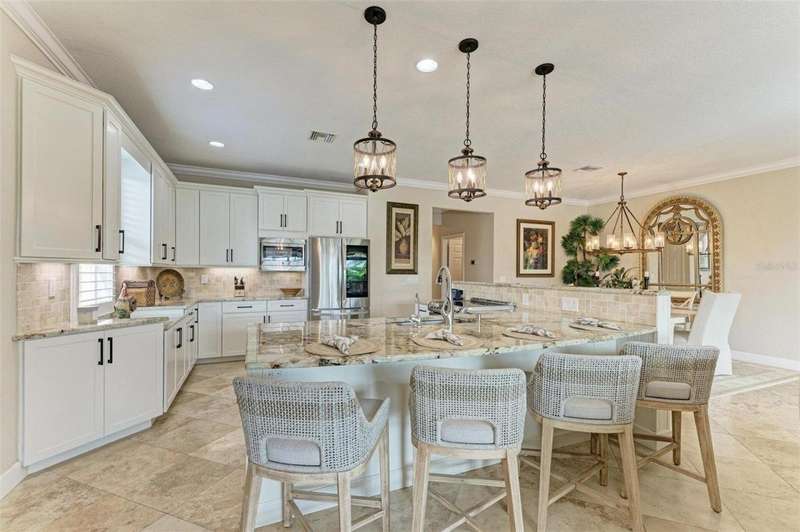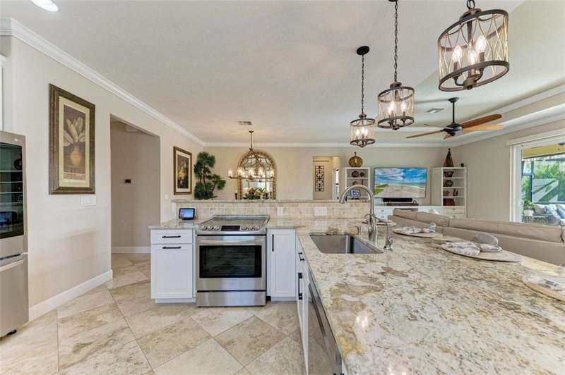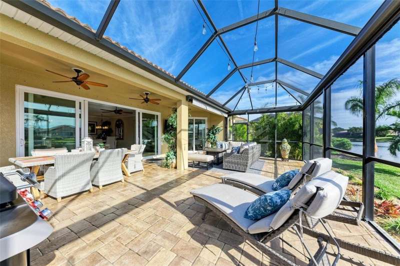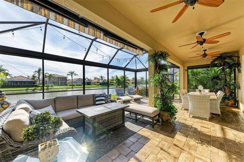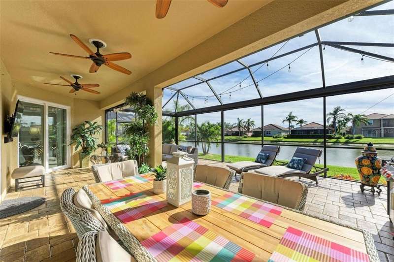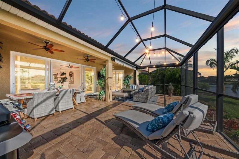 Under contract-accepting backup offers. THIS LUXURY HOME IS WAITING FOR YOU... $180K IN UPDATES...BRING AN OFFER!!! MUST SEE !! This exquisite residence within River Strand Golf and Country Club seamlessly blends luxury, comfort, and sophisticated design. Boasting a deeded golf membership, this meticulously updated home features an open floor plan with captivating water views and over $180,000 in enhancements. The fully remodeled kitchen showcases custom granite countertops, cabinetry, and top-of-the-line appliances, opening onto a spacious lanai with tailored lighting and privacy shades-an ideal space for both relaxation and entertaining. Additional highlights include a versatile bedroom with a Murphy bed, elegantly redesigned bathrooms offering a spa-like ambiance, and premium finishes such as travertine flooring, plantation shutters, and upgraded HVAC systems.The garage is a remarkable extension of the home, offering custom rubber flooring, an insulated door, and an air-conditioned space-perfect for use as a home gym or a pristine area to house your vehicles. The exterior of the property is equally impressive, featuring custom landscaping and nightscaping that accentuate the home's beauty and the surrounding environment.Beyond the home's refined interior, River Strand Golf and Country Club offers an unparalleled lifestyle. Residents enjoy access to a newly redesigned Andrew Green 27-hole championship golf course, Har-Tru tennis courts, pickleball facilities, resort-style swimming pools, fitness centers, and a vibrant clubhouse and restaurant/ tiki bar. Ideally located with easy access to I-75, University Town Center, and the area's pristine beaches, this residence represents the pinnacle of luxury living, offering an extraordinary blend of convenience, elegance, and leisure.